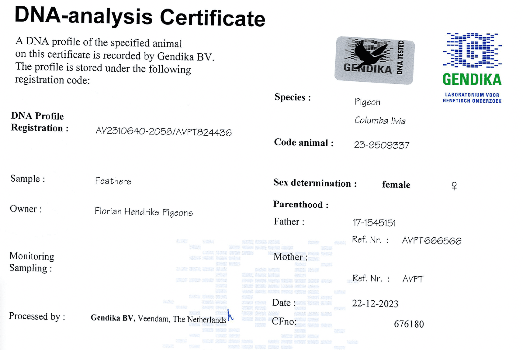Direct son of “Kleine Gerard” (winner of 2nd NPO 8,278b. – 4th NPO 1,310b. – 5th NPO 5,537b. - 11th NPO 1,326b. - 13th Prov. 10,912b. – 17th NPO 5,166b.) x “Laat 431” (5th NPO Sezanne 4,778b.)