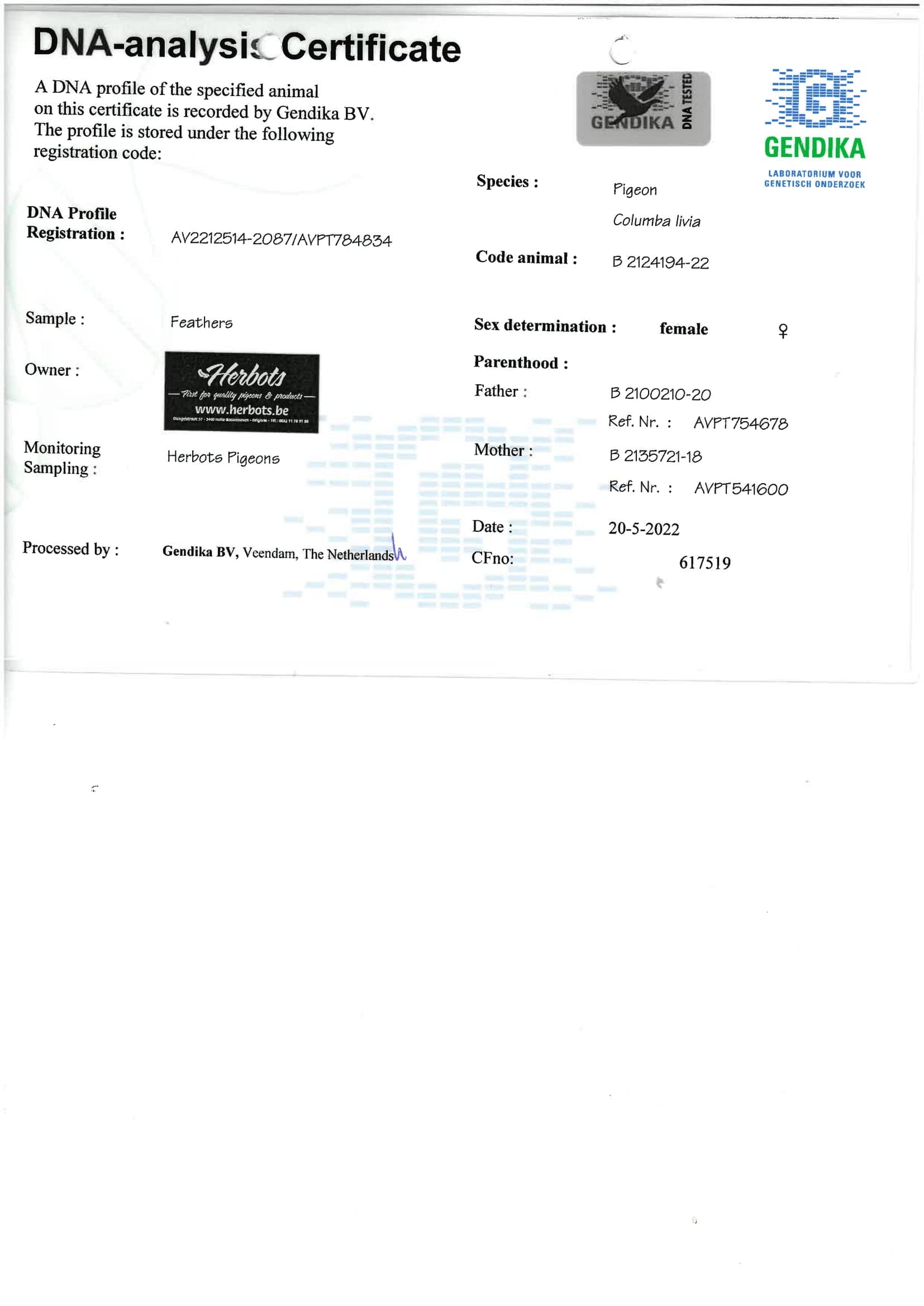 Mother: BE2135721-18 “NATIONAL 1 BEST”