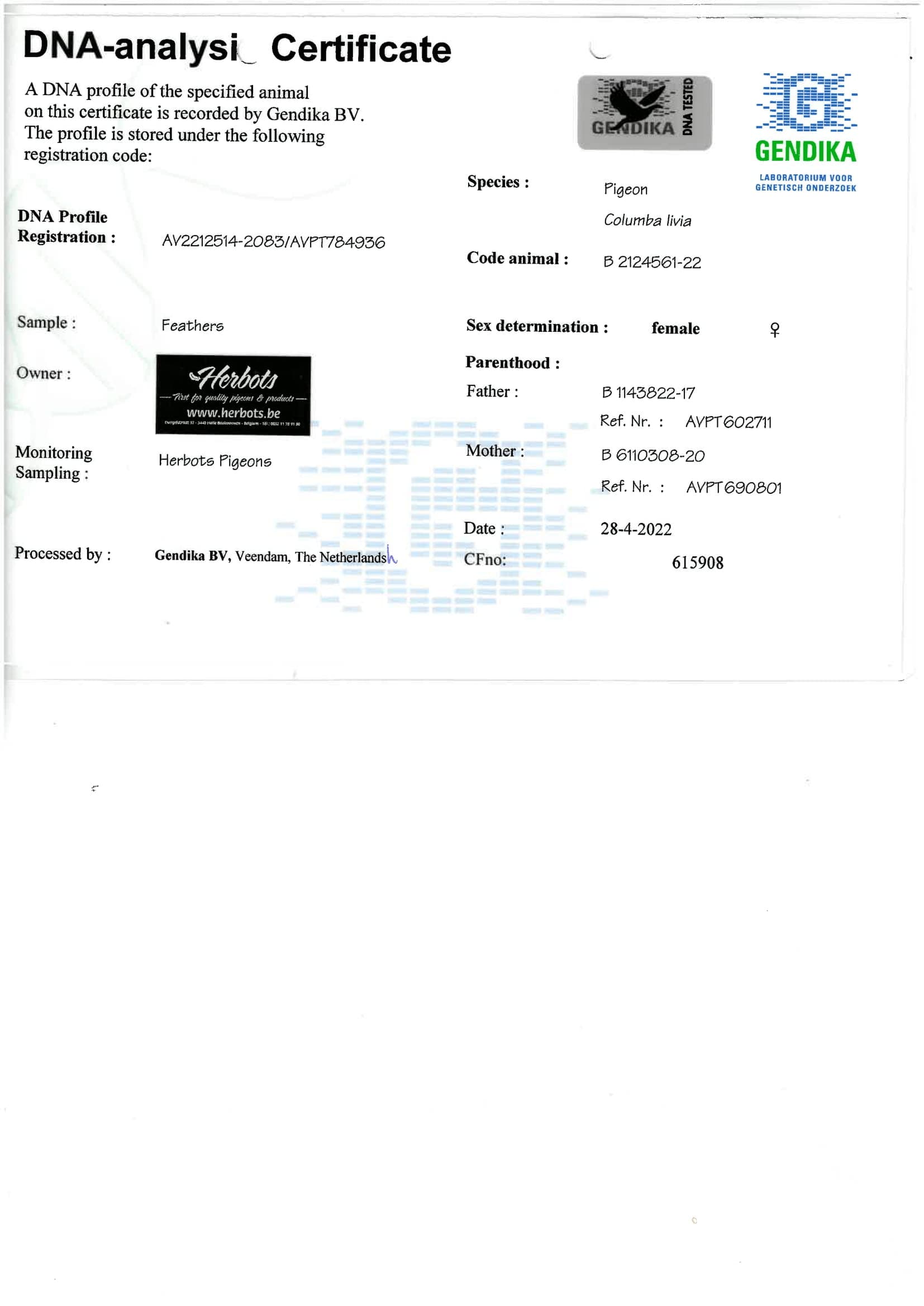 Mother: BE6110308-20 Van Den Bulck