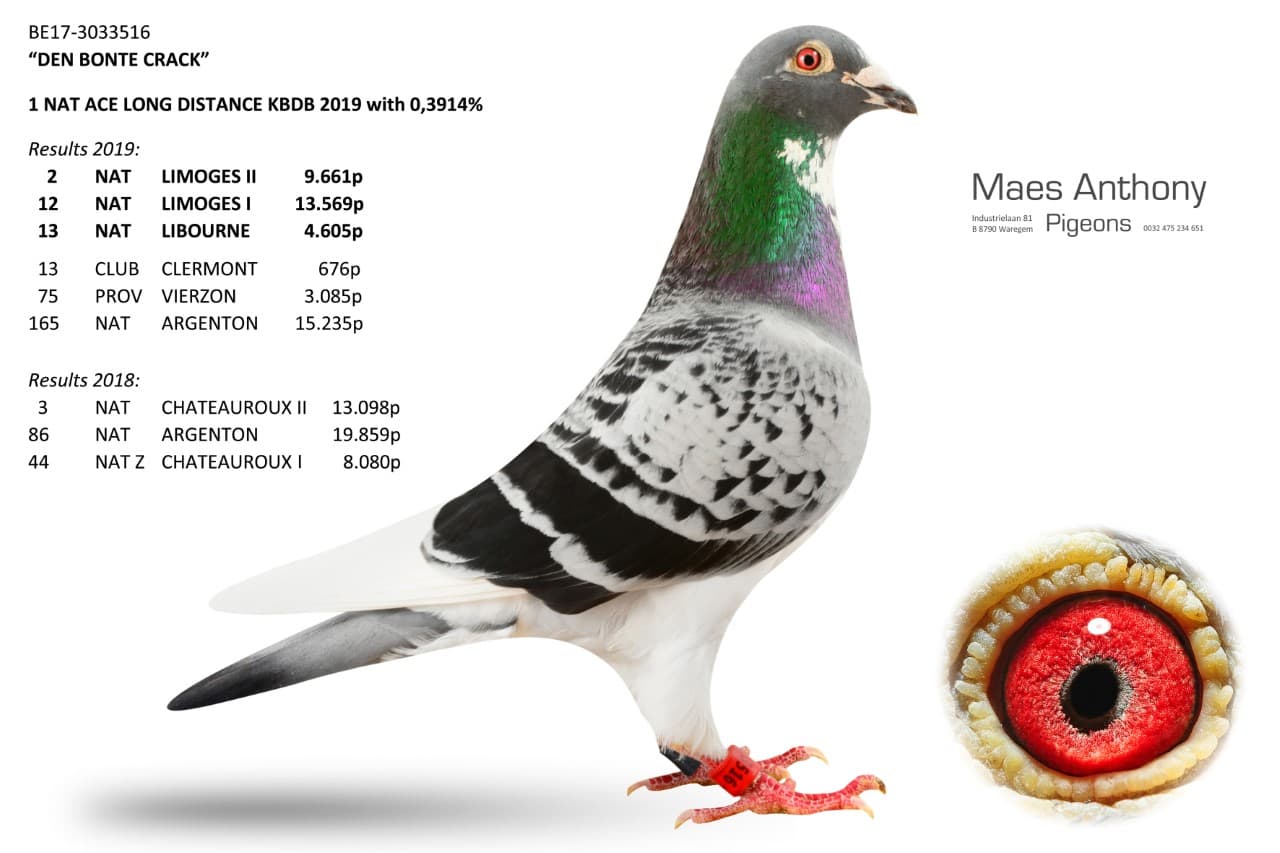 Daughter “Bonten Crack” x BE3122085-16 (Maes Anthony - super breeding hen!)