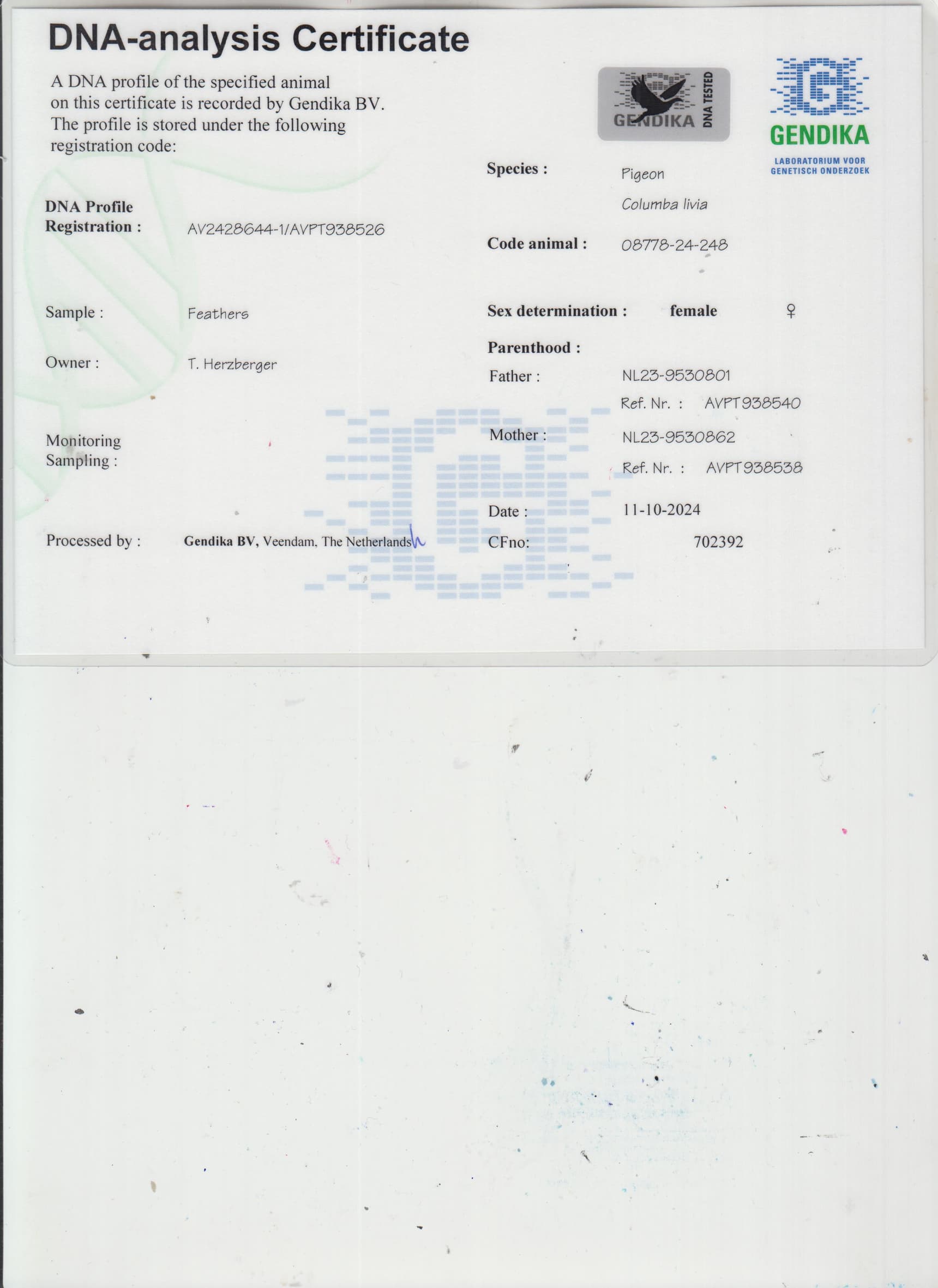 Born out “Olympic Wolfgang” (1st/2,947b. – 1st/1,265b.- 1st/1,187b. – 1st/1,124b. – 1st/846b.) x world-famous “Goed Grijs” (7 x 1st and champion breeder)