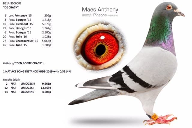 “Bonten Crack” won: 1st National ace KBDB Fond 2019 - 2nd Nat. Limoges 9,661b. – 3rd Nat. Chateauroux 13,098b. - 12th Nat. Limoges 13,569b. – 13th Nat. Libourne 4,605b. - 86th Nat. Argenton 19,859b.