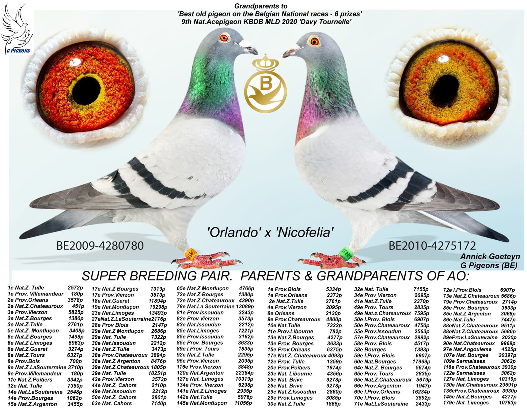 Won: 1st Nat (z) Tulle 2,572b.- 12th Nat. 7,350b. - 1st Arras 203b. – 15th Nat (z) Argenton 3,455b. - 34th Nat. Tulle 3,473b. – 38th Nat (z) Argenton 8,476b.