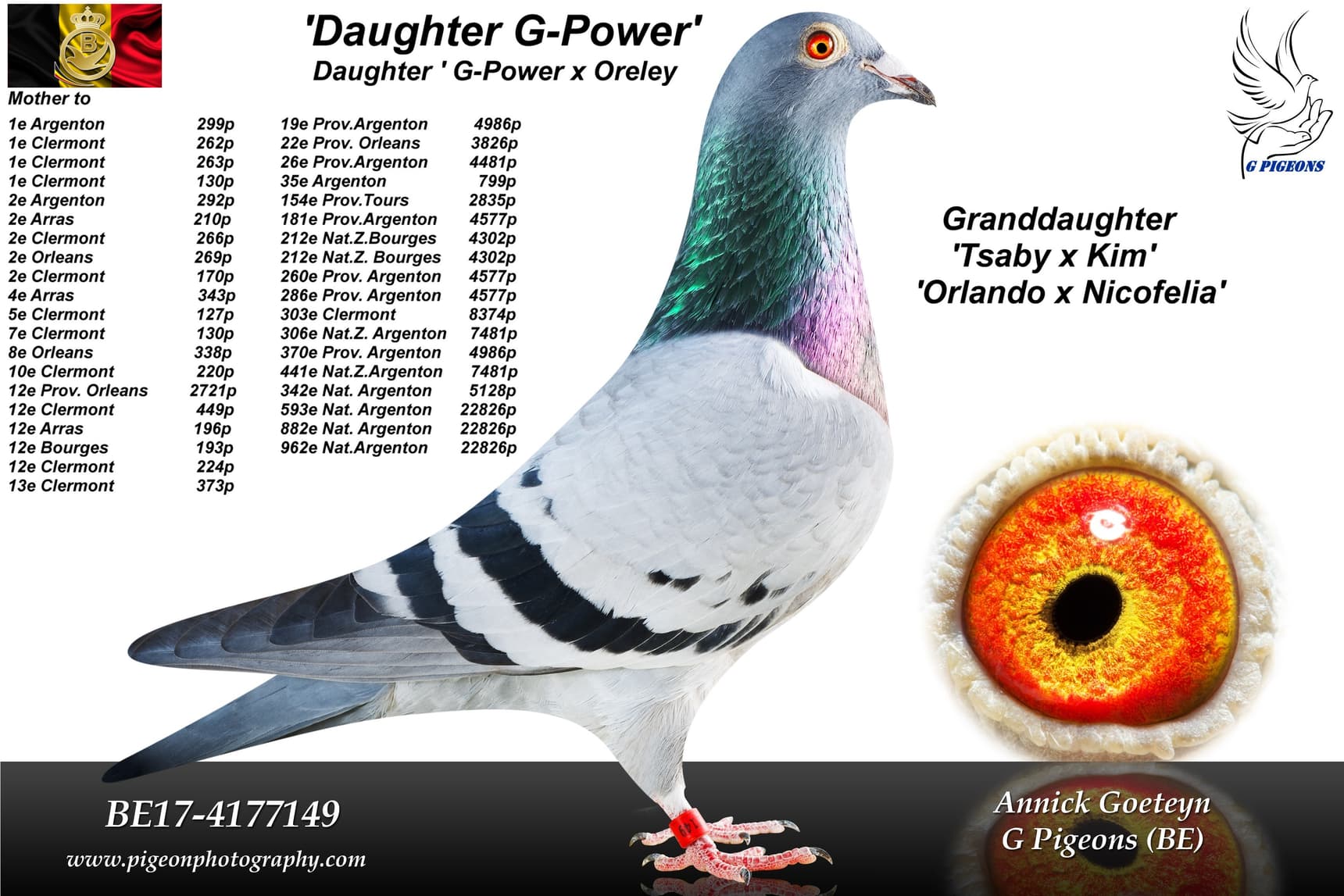 Direct daughter “G-Power” (5th Nat. Poitiers 12,379b.) x “Oreley” (Daughter Orlando x Nicofelia - 1st Prov. Blois 5,334b.)