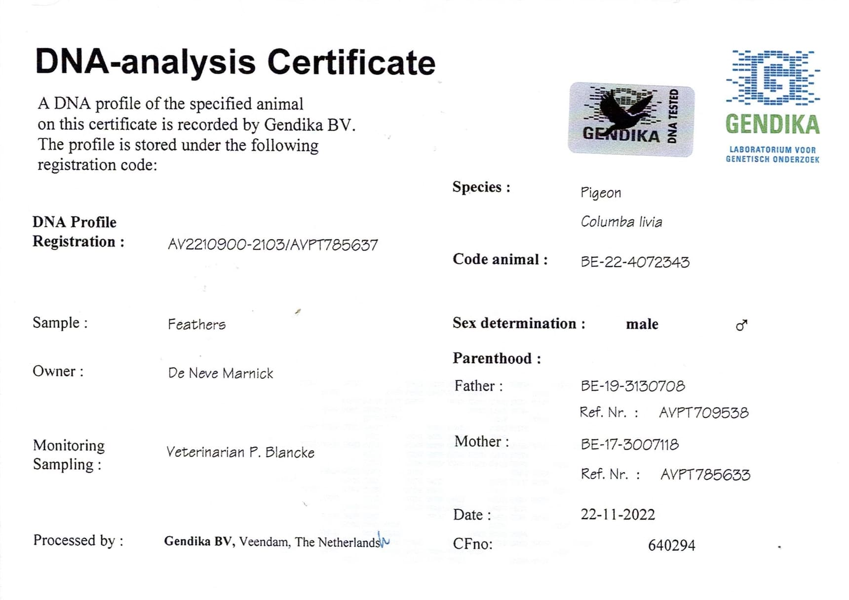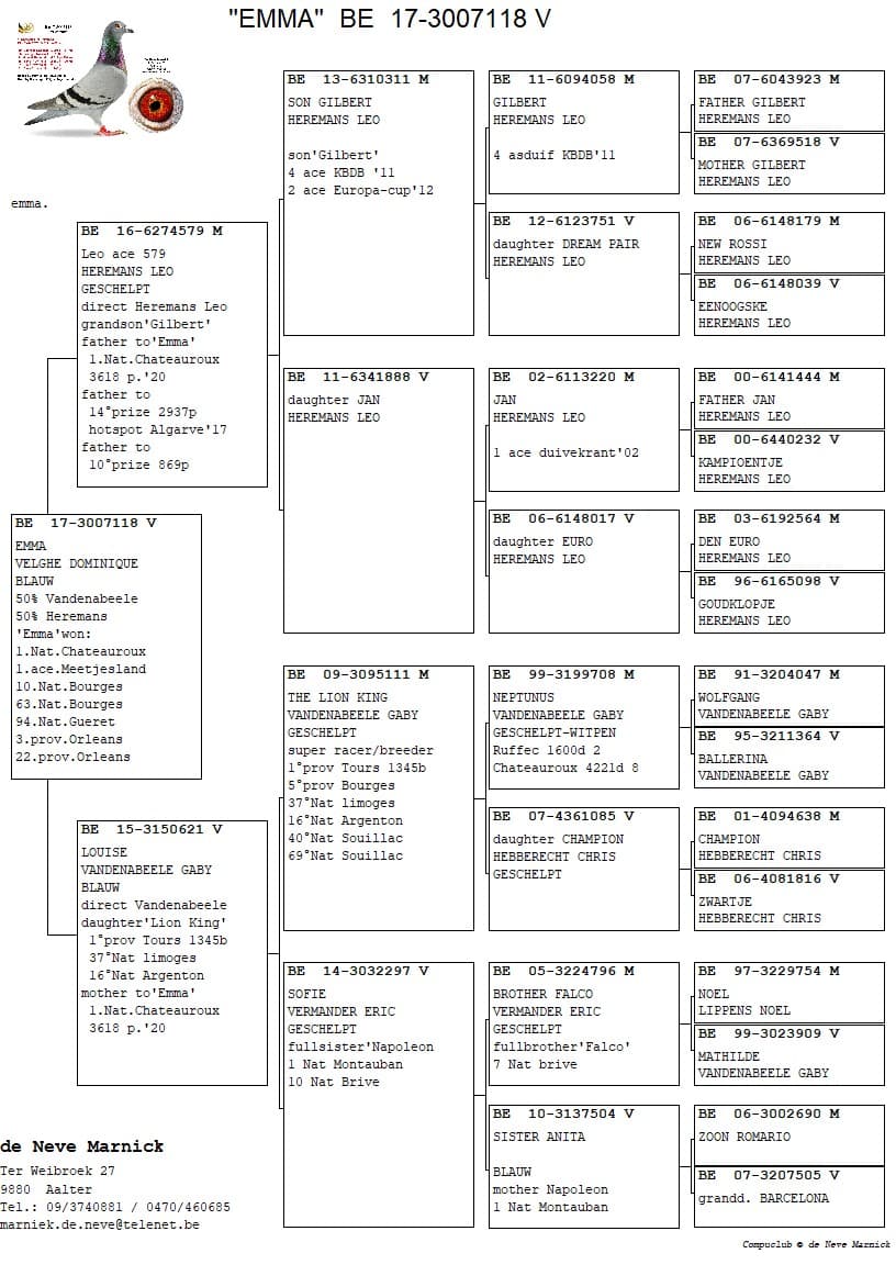 6th Provincial ace KBDB 2020 - 2nd Best bird of Belgium on 8 national races 2020 - 7th Best bird of Belgium on 7 national races 2020 - 10th Best bird of Belgium on 6 national races 2020