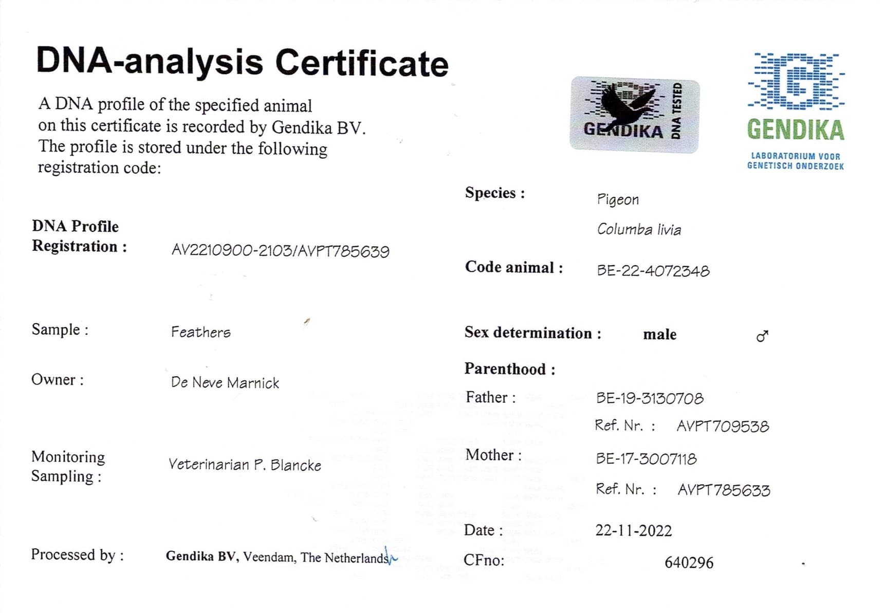 6th Provincial ace KBDB 2020 - 2nd Best bird of Belgium on 8 national races 2020 - 7th Best bird of Belgium on 7 national races 2020 - 10th Best bird of Belgium on 6 national races 2020
