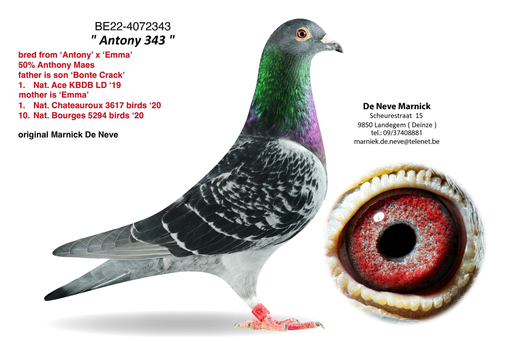 Won: 1st Nat. ace KBDB old birds Fond ‘19 - 2nd Nat. Limoges 9,661b. – 3rd Nat. Chateauroux 13,098b. – 12th Nat. Limoges 13,569b. – 13th Nat. Libourne 4,605b. – 86th Nat. Argenton 20,000b.