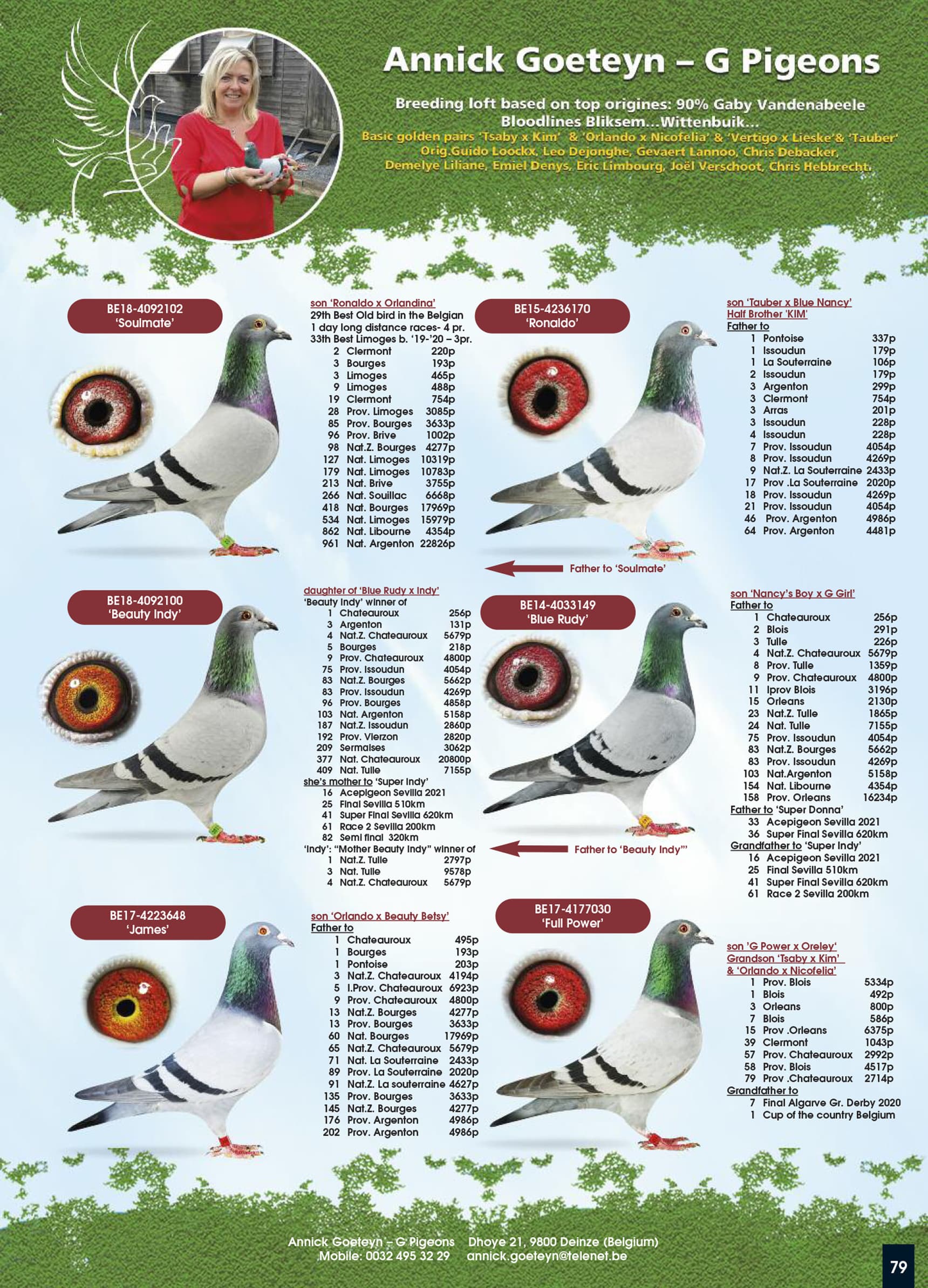 1st Race – 2nd Thailand Masters OLB ‘22 – 180km 1st Chateauroux 256b. – 2nd Blois 291b. - 3rd Tulle 226b. – 4th Nat (z) Chateauroux 5,679b. – 8th Prov. Tulle 1,359b. – 9th Prov. Chateauroux 4,800b. –11th Iprov. Blois 3,196b. - 15th Orleans 2,130b. – 24th Nat. Tulle 7,155b.- 75th Prov. Issoudun 4,054b. – 83rd Nat (z) Bourges 5,662b. – 83rd Prov. Issoudun 4,269b. - 85th Nat. (z) Bourges 4,566b. – 88th Prov. Tulle 2,513b. – 158th Prov. Orleans 16,234b.