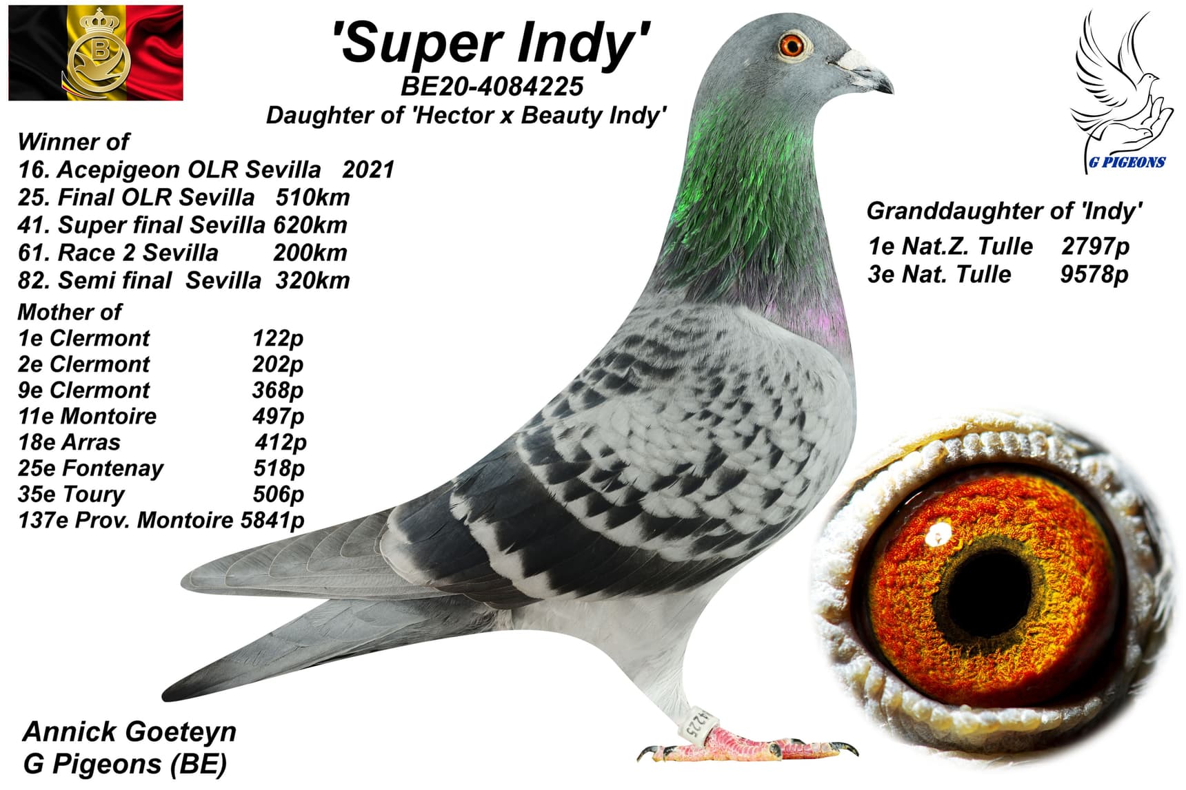 Born out “G-Power” (son of “Tsaby” x “Kim” - 5th Nat. Poitiers 12,379b.) x “Oreley” (daughter “Orlando” x “Nicofelia”)