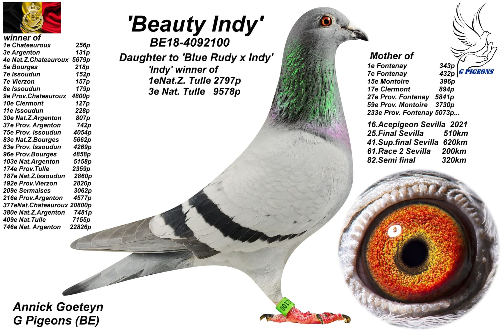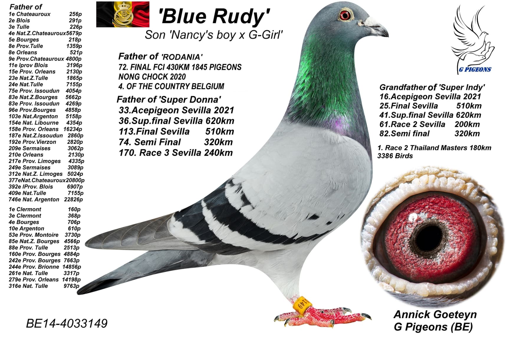 Direct daughter “Blue Rudy” (grandson “Rudy” - Vandenabeele) x “Indy” (3rd Nat. Tulle 9,578b.)