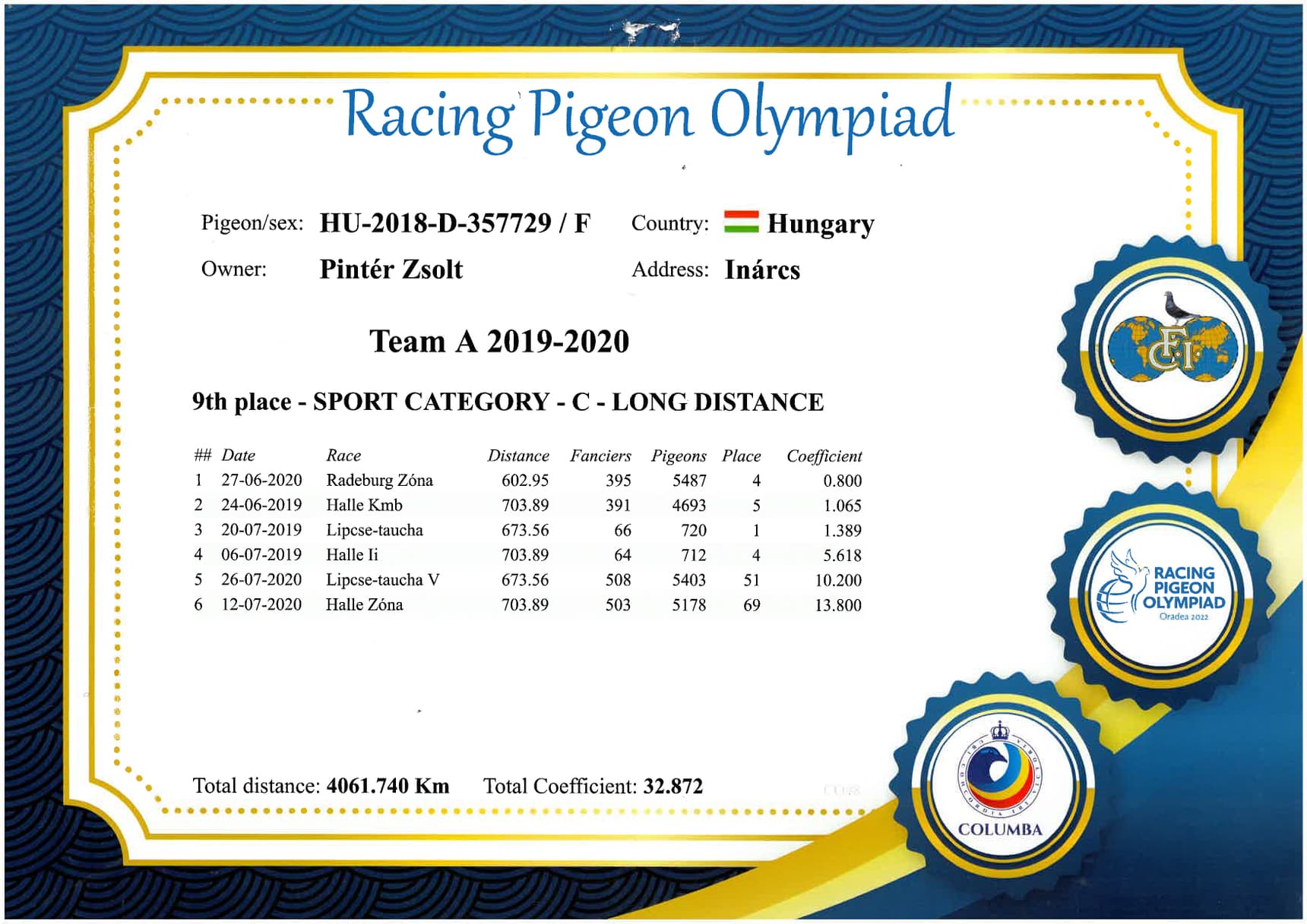 Won: 2nd national Olympic Ace Pigeon categorie c ( long distance)