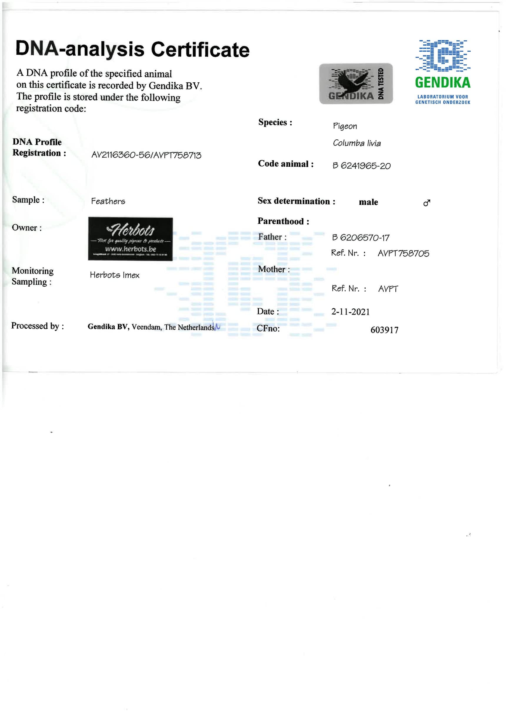 Breeder: VAN HOVE - UYTTERHOEVEN 万侯