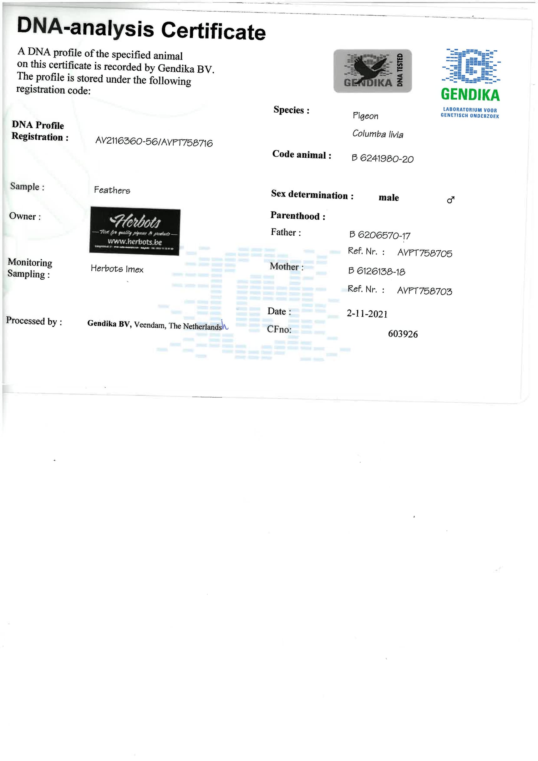 winner ofBest bird of Belgium on 2 Fond races ’16 – 1st