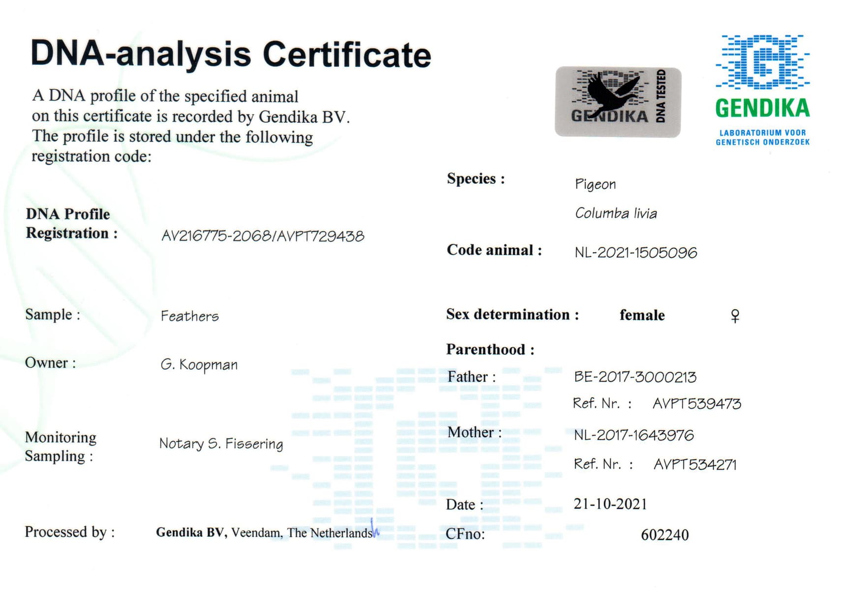 Breeder: KOOPMAN GERARD 吉拉德·考夫曼