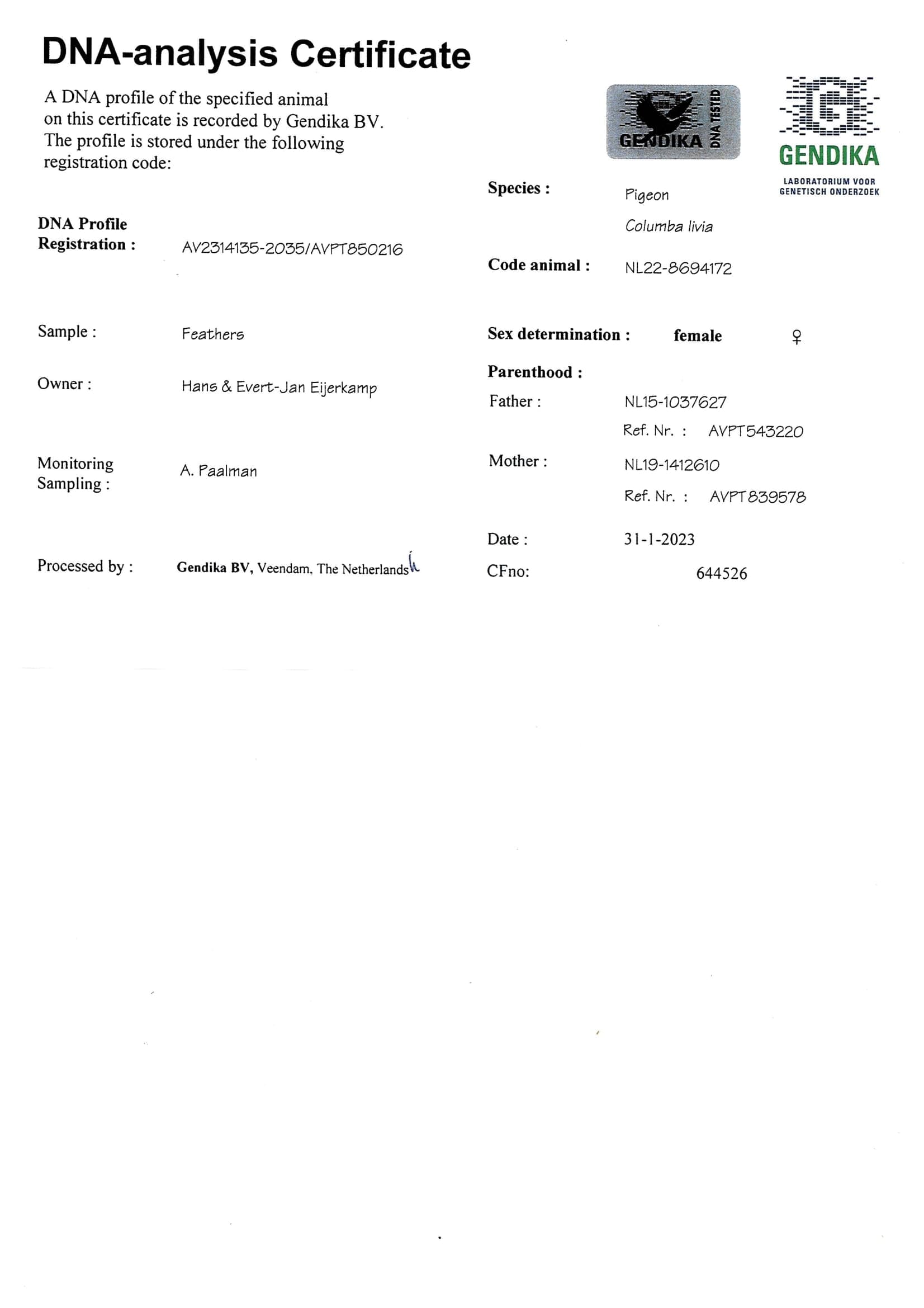 Breeder: EIJERKAMP HANS & EVERT-JAN 汉斯 & 艾佛特-杨·爱亚卡普