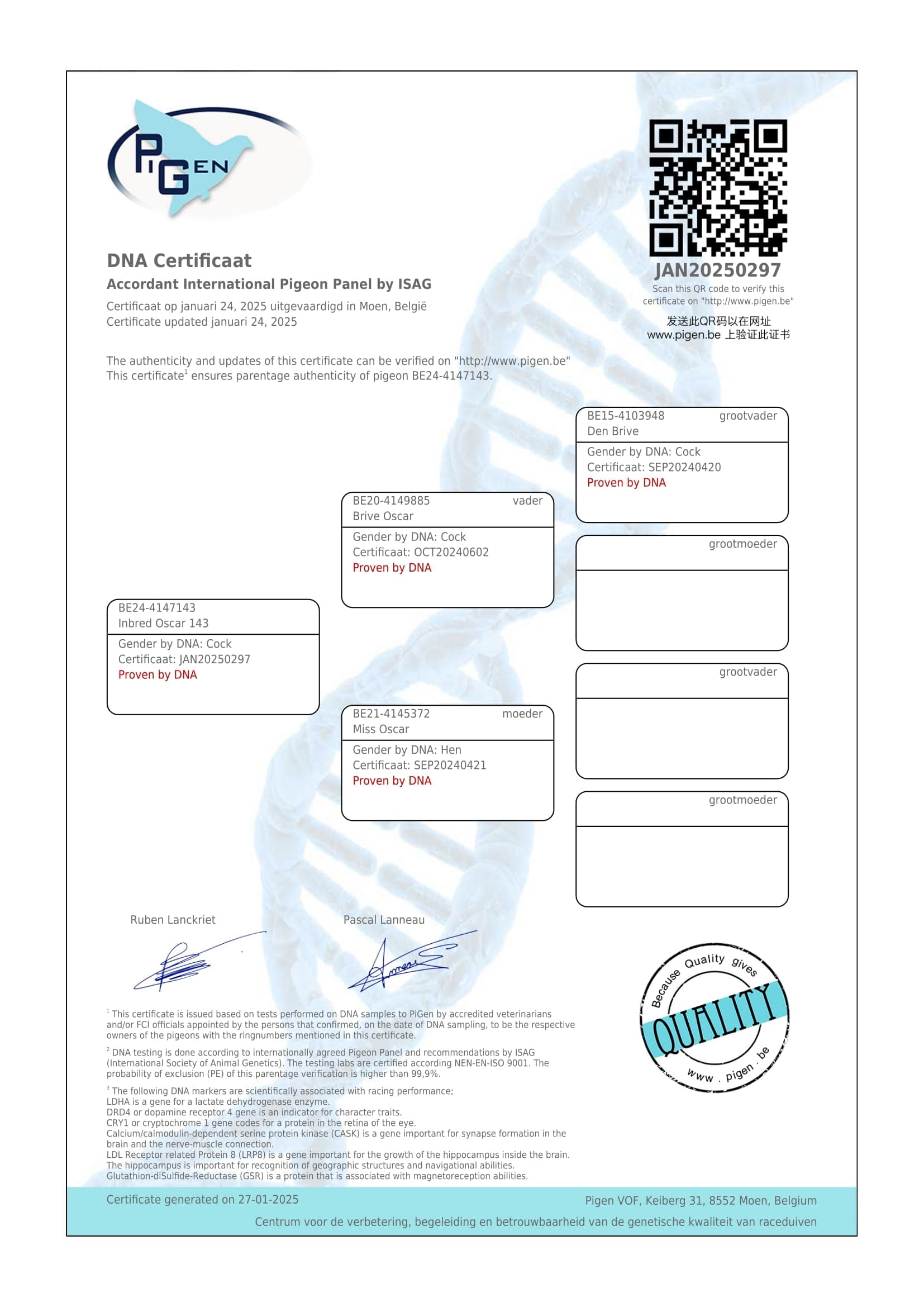 Breeder: LEUTENEZ EDDY & MAARTEN 艾迪&马腾·鲁腾兹
