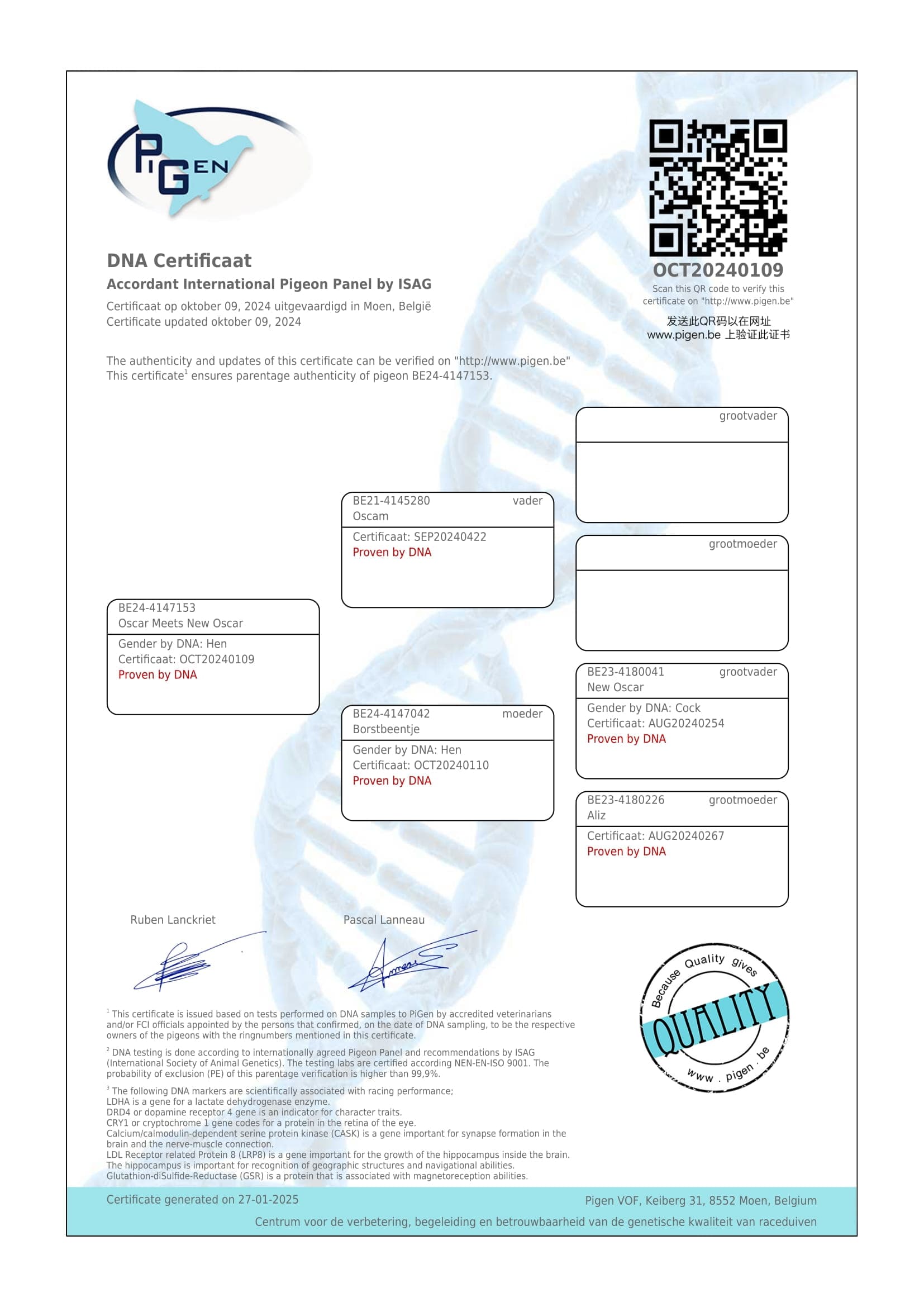 Breeder: LEUTENEZ EDDY & MAARTEN 艾迪&马腾·鲁腾兹
