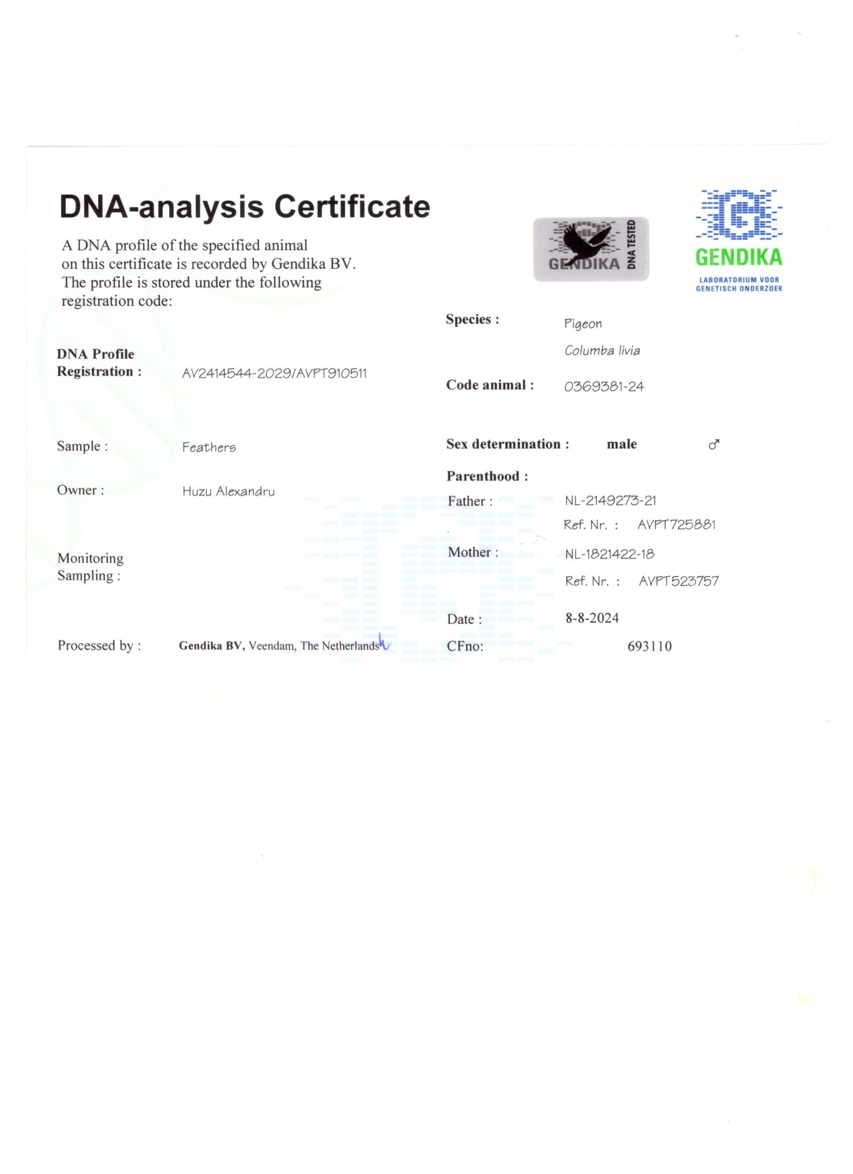 Breeder: HUZU ALEXANDRU 亚历山德鲁·胡祖