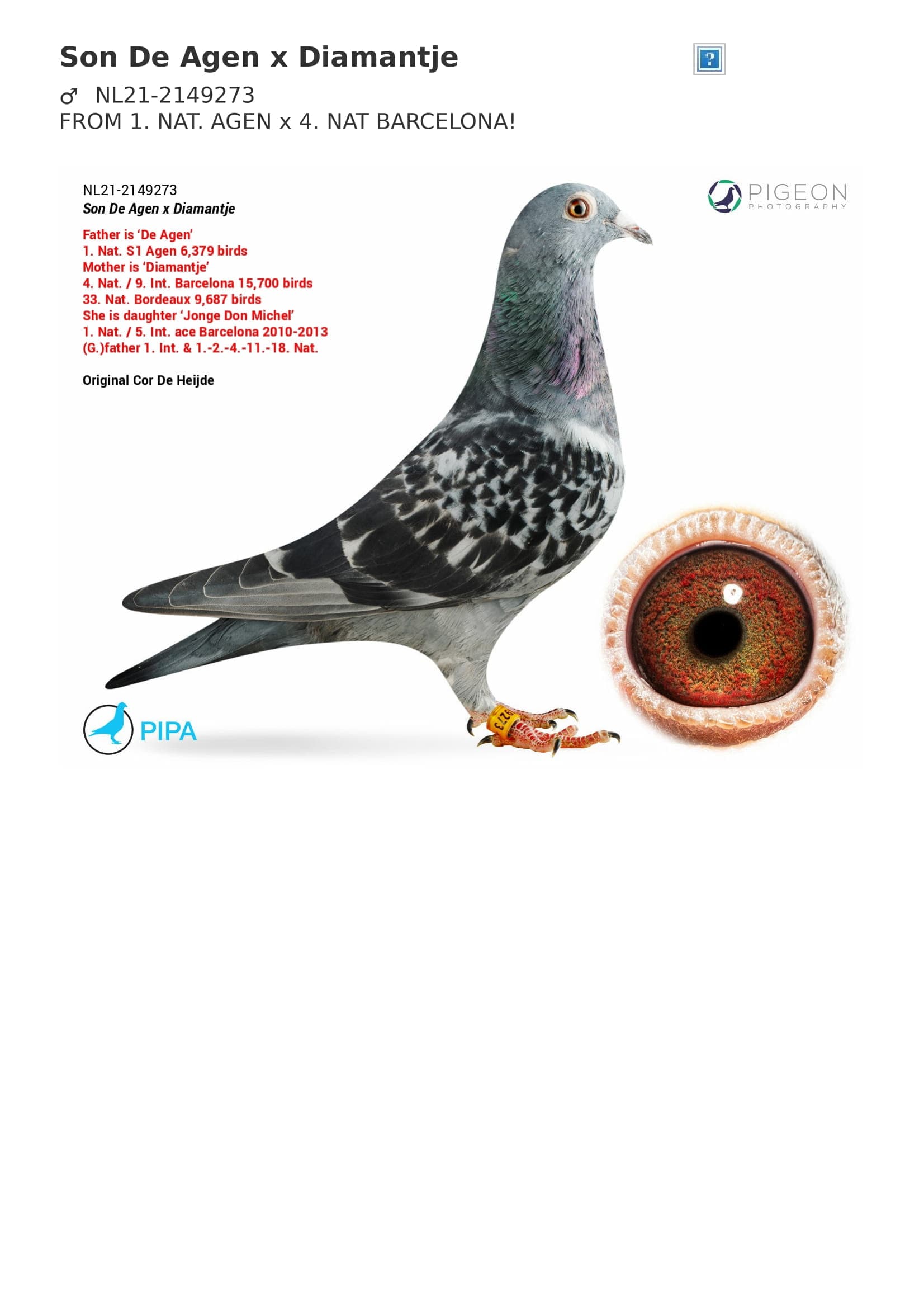 Father: “Son Diamantje” NL21-2149273 – original C. de Heijde