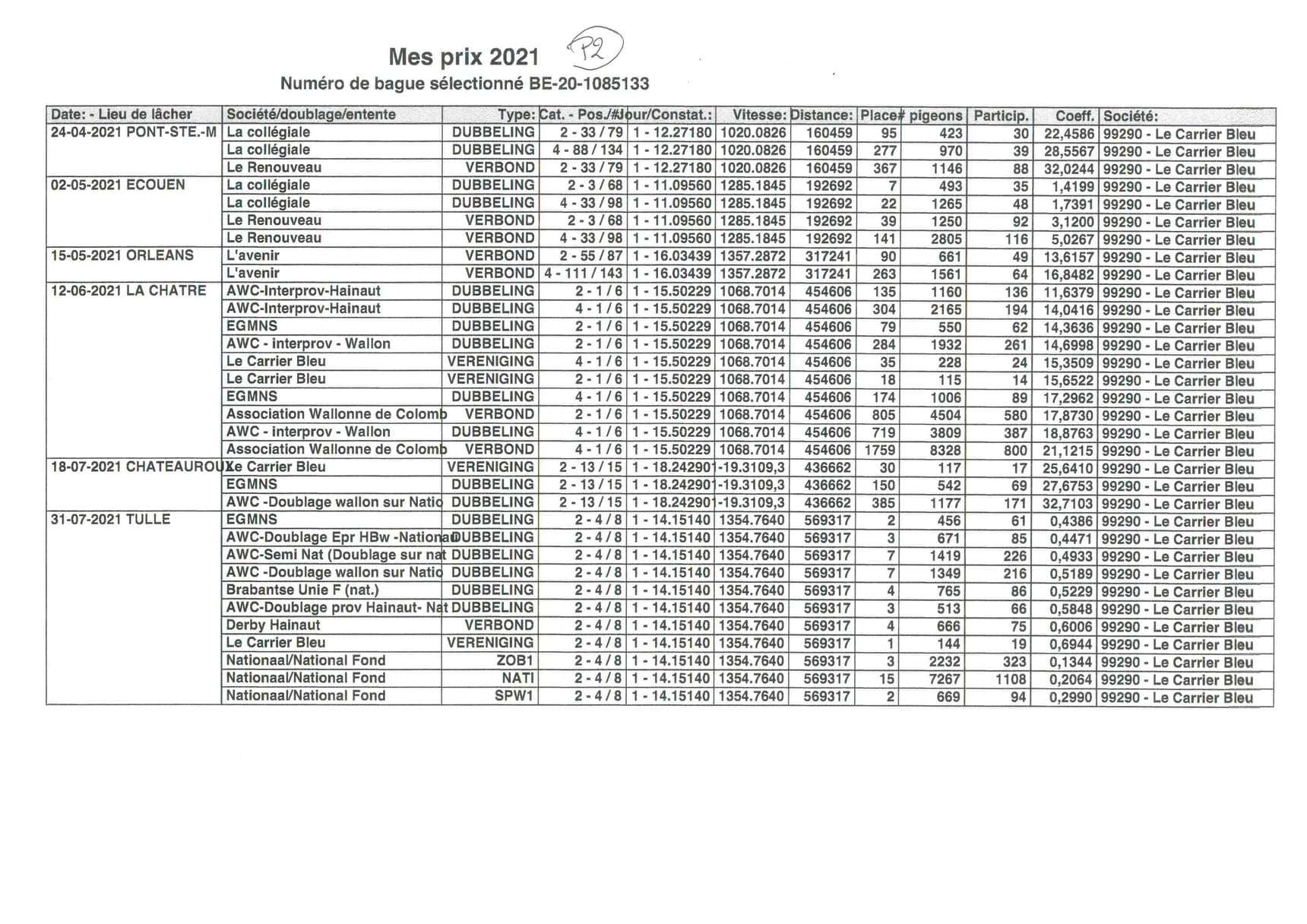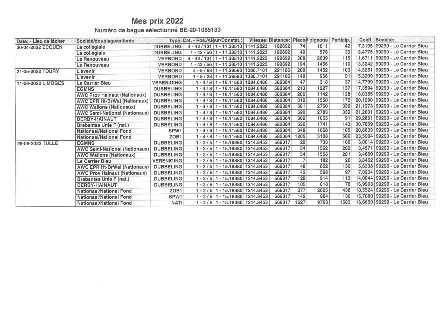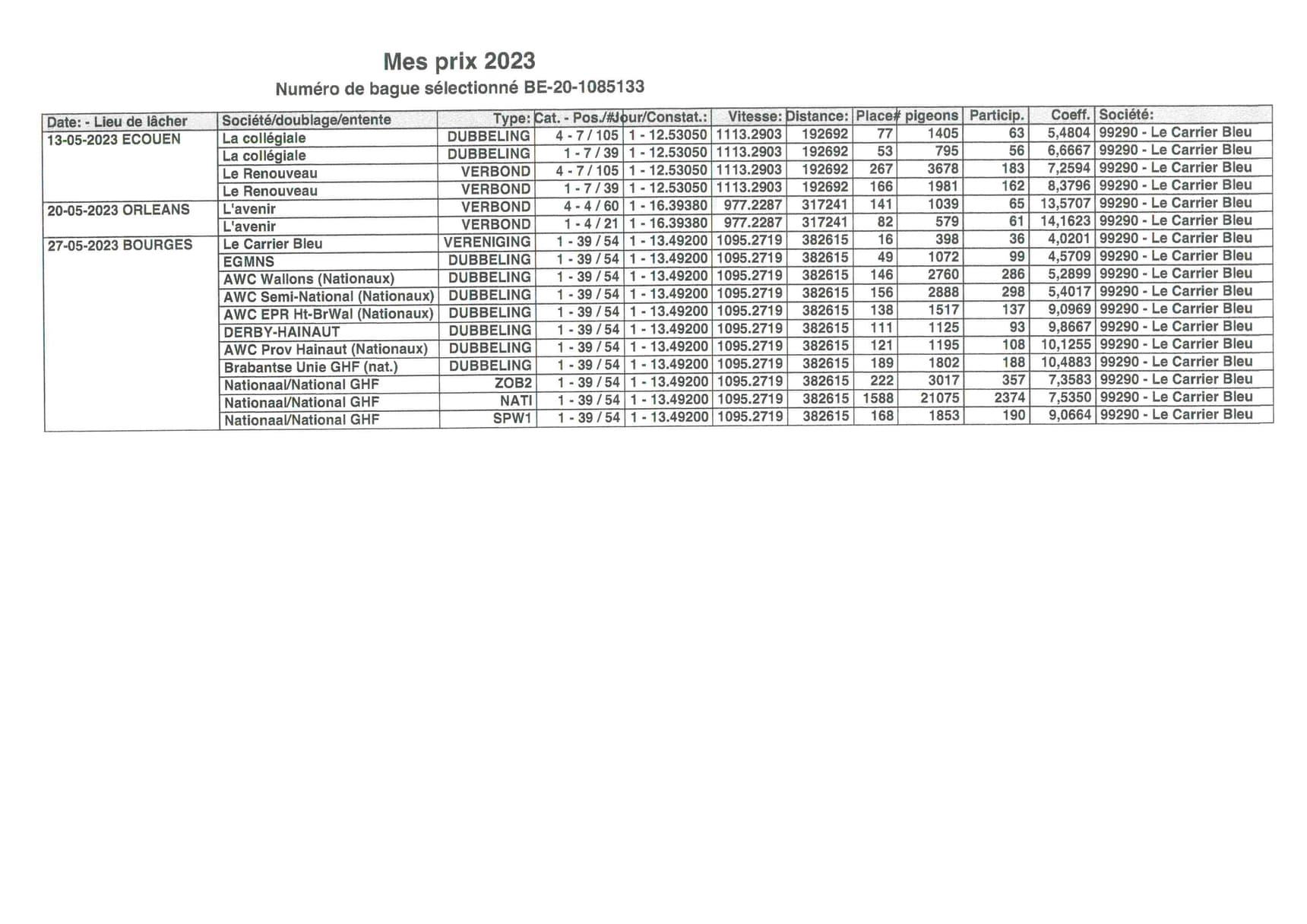 Direct son “Tapine 07” (also father to 42nd Nat. Bourges - 1st/4,208b. – 2nd Argenton 3,104b. – and so on) x “Frida” (mother to above noted toppers)