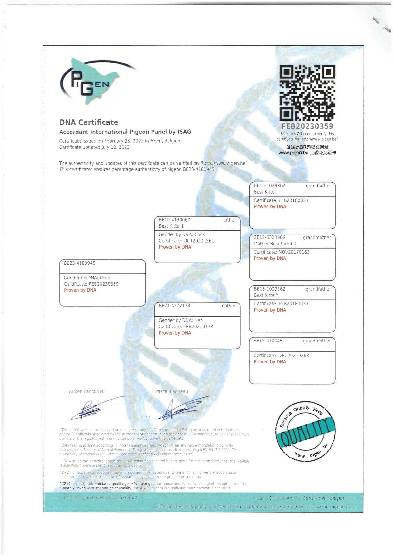 Born out “Best Kittel” (all info see above) x “Angelina”(full sister to “Kittel” – Van den Bulck)