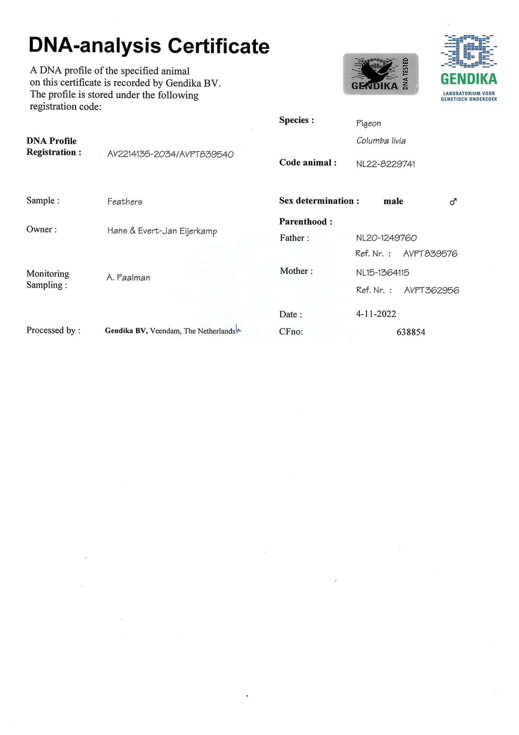 Breeder: EIJERKAMP HANS & EVERT-JAN 汉斯 & 艾佛特-杨·爱亚卡普