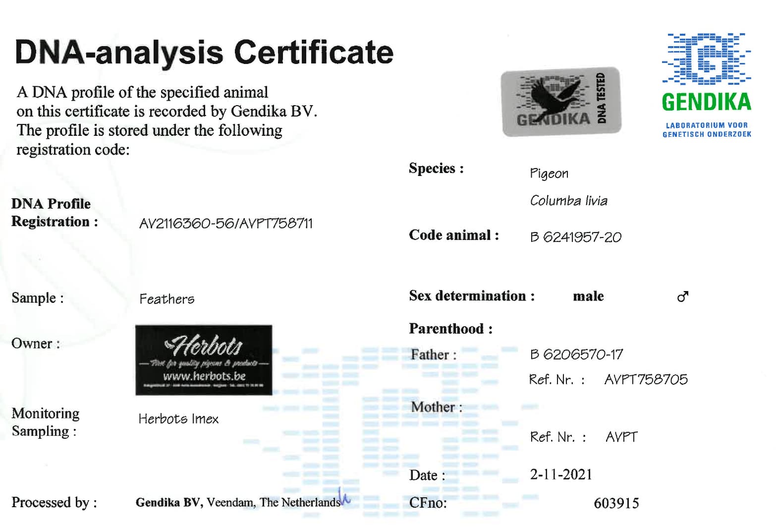 Is a full sister to “Grand Cru” (4th Nat. ace KBDB youngbirds