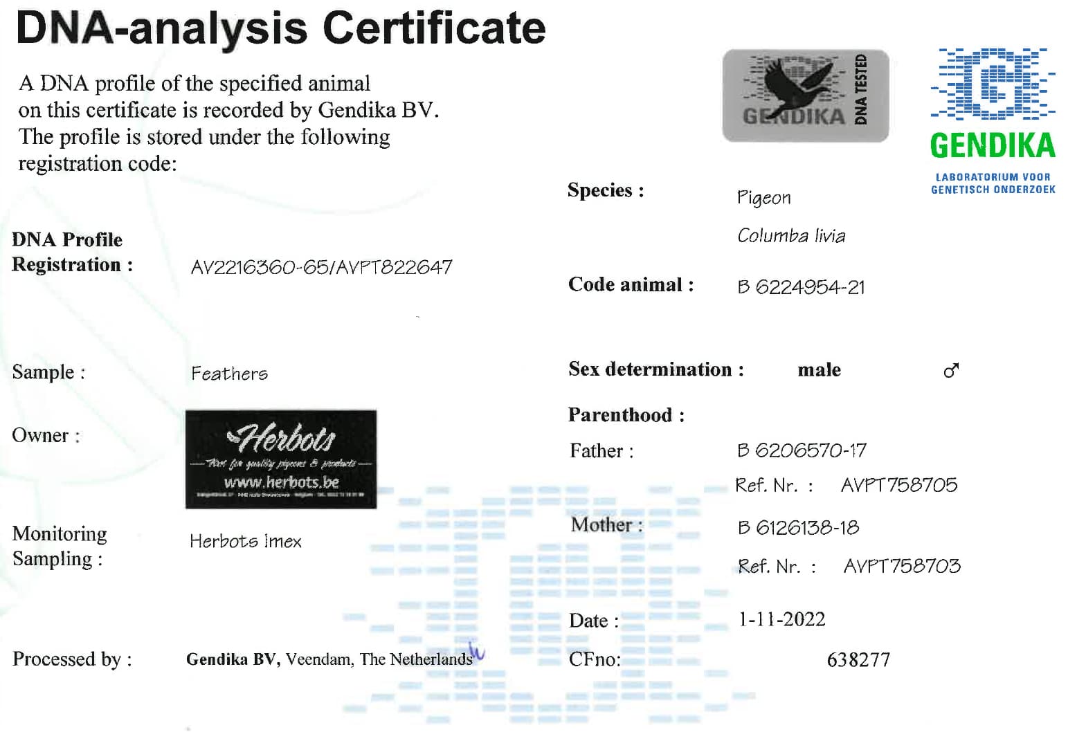 winner ofBest bird of Belgium on 2 Fond races ’16 – 1st