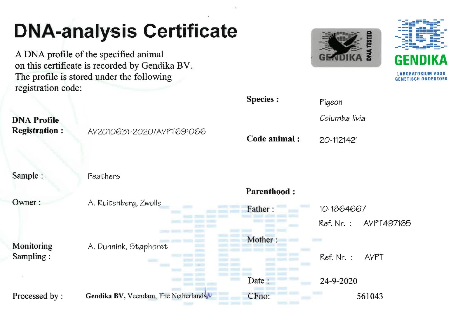 Direct daughter “Valentino” x “Paulien” (8th Nat. ace KBDB)