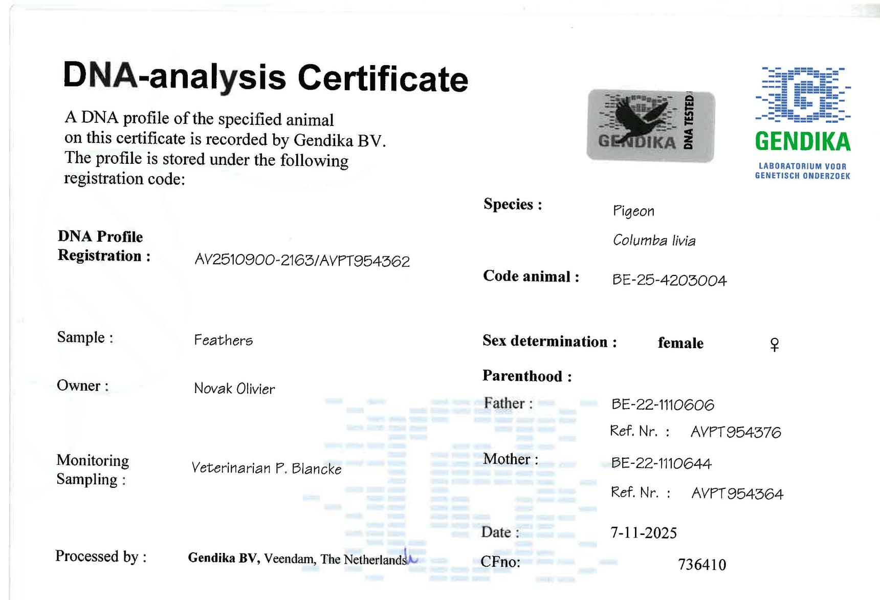 Breeder: NOVAK OLIVIER 诺瓦克·奥利佛