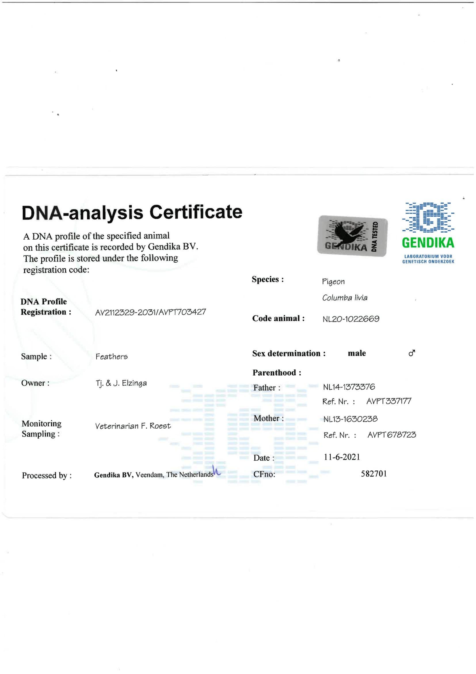 Born out “NL09-5919240” (brother 1st Nat. ace “natour” WHZB) x “Sister Miracle” (sister 1st NPO Morlincourt 8,834b. – 1st provincial ace “Friesland”)
