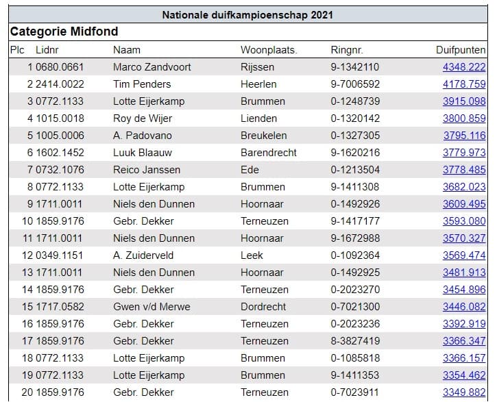 Brussels) x “De Olympiade” (26th Olympiad bird