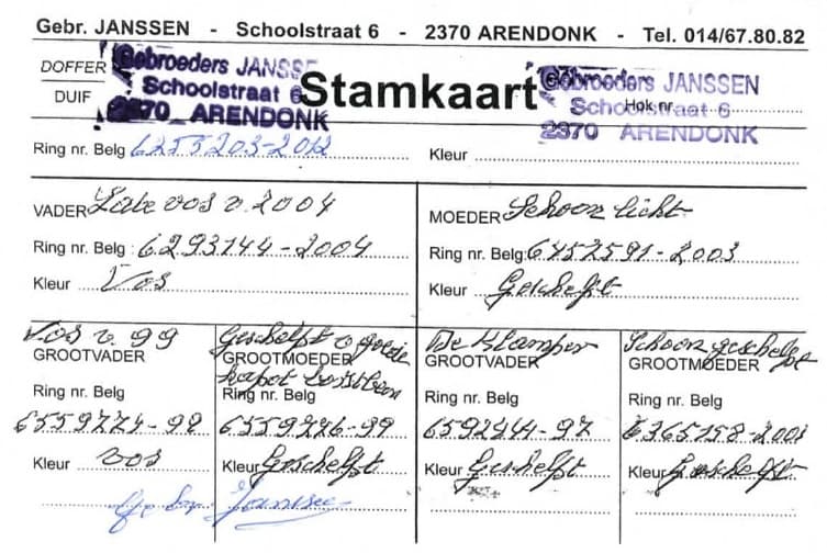 Breeder: 100% Gebr. Janssen - Arendonk 纯詹森兄弟