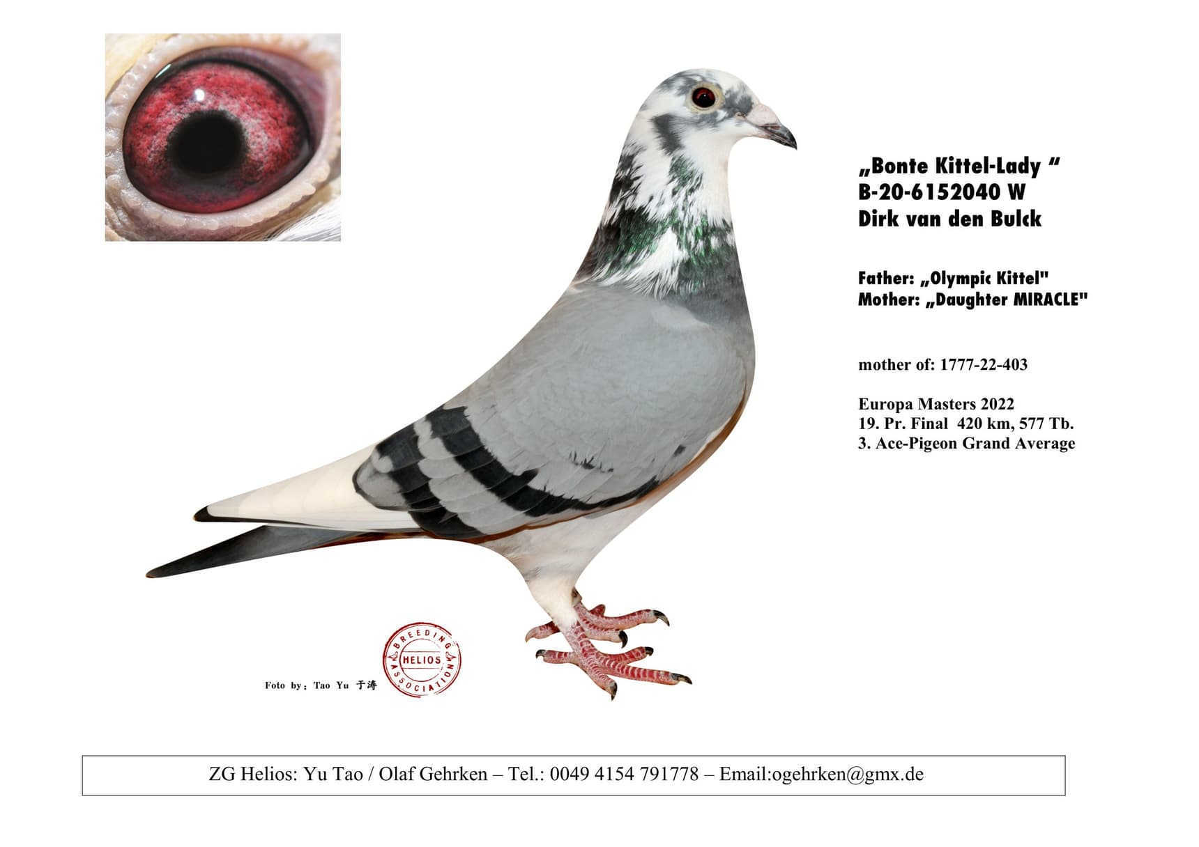 Direct son “B06-3201340” (original Willy Vanhoutte - is grandfather to 3 different 1st ace birds and 2 different 1st OLR Final race winners) x “ Granddaughter Golden Lady 728” (won 41st prize OLR Algarve Golden Race 2018 – 2,132b.)