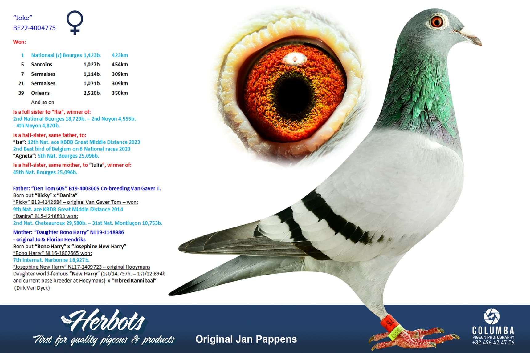 Daughter world-famous “New Harry” (1st/14,737b. – 1st/12,894b. and current base breeder at Hooymans) x “Inbred Kannibaal” (Dirk Van Dyck)