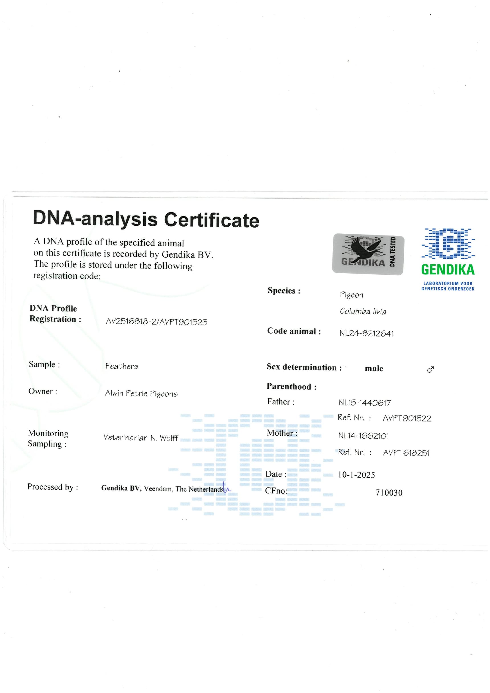 Is a full sister to 2nd Nat. ace ½ Fond youngbirds KBDB 2013
