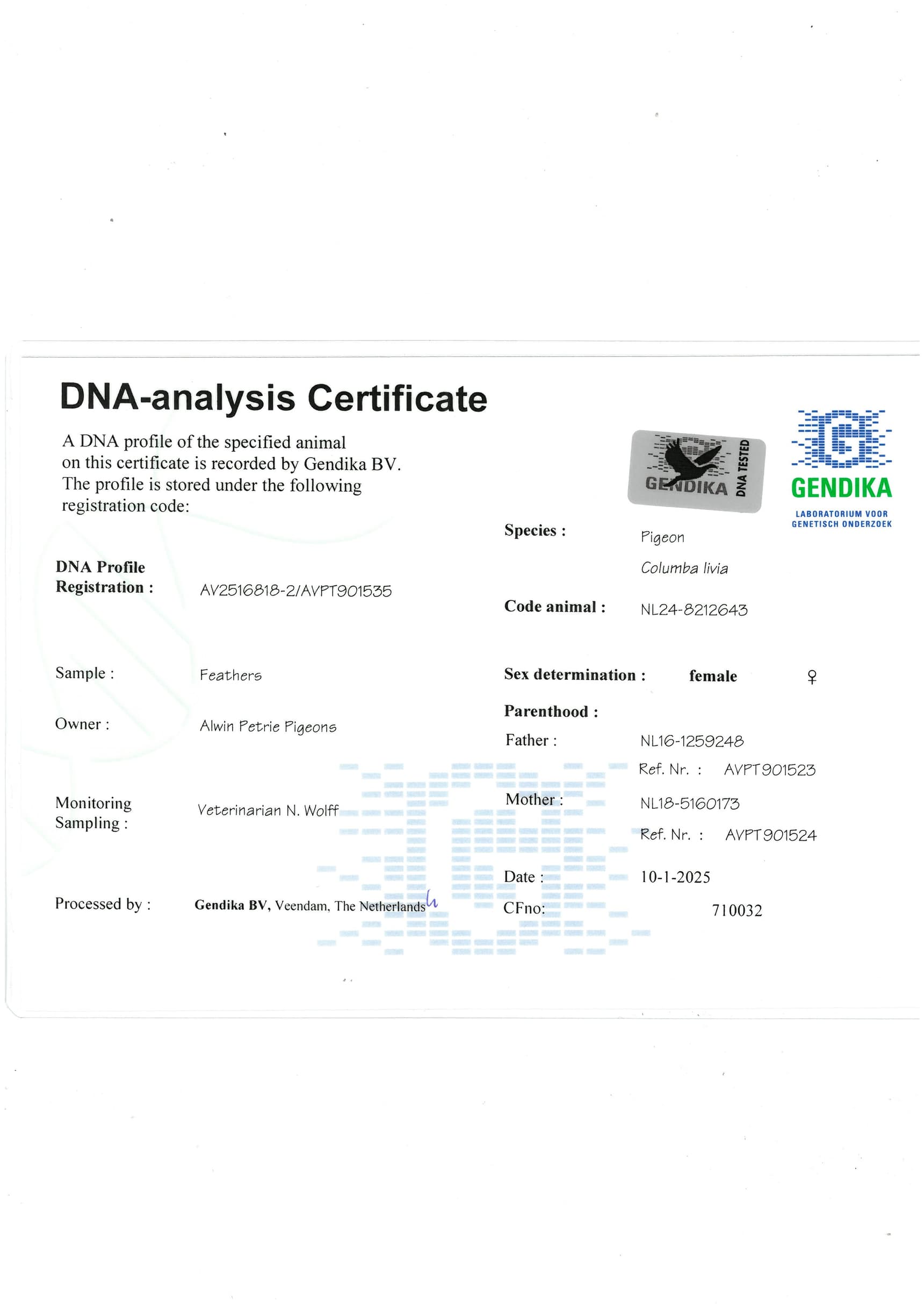 Daughter of 2nd World Best Pigeon Middle Distance FCI 2020