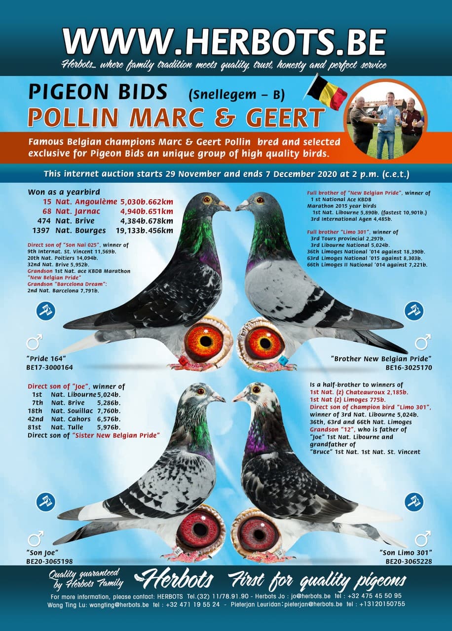 Marc & Geert Pollin (Snellegem) bred and selected exclusive for Pigeon Bids an unique group of birds