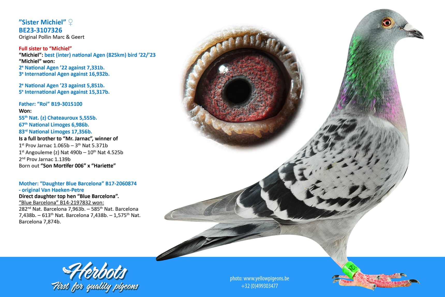 “Michiel”: best (inter) national Agen (825km) bird ‘22/’23