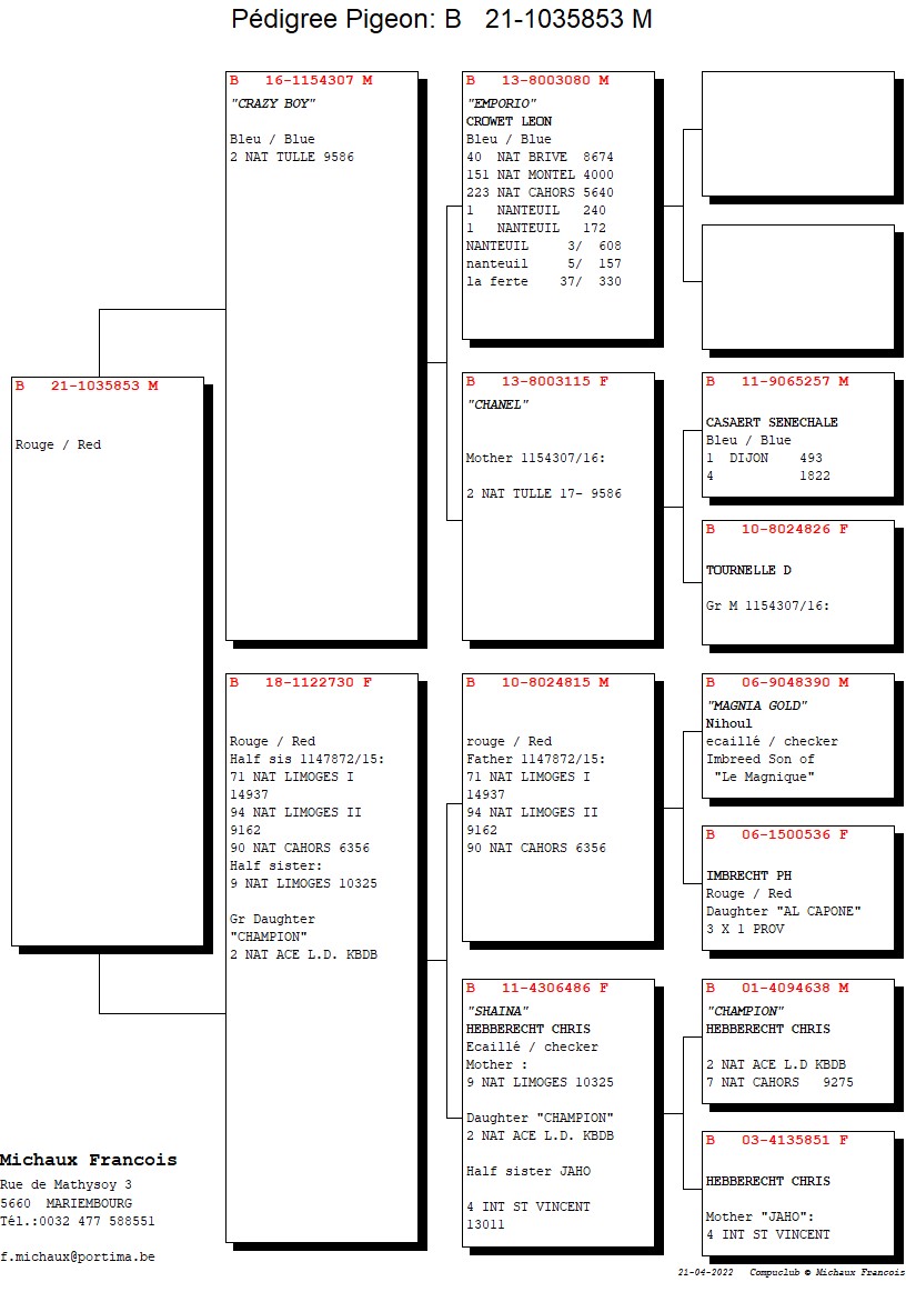 Breeder: MICHAUX FRANCOIS 法郎斯哇·米肖