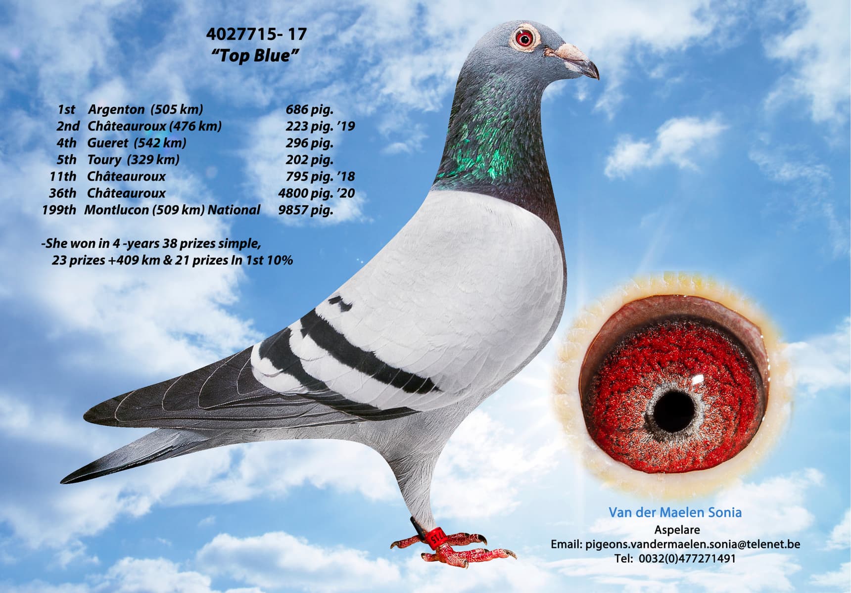 Born out “B12-4088313” (full brother 1st Prov. La Souterraine 4,567b. at Temmerman-Arijs) x “B12-4088344” (granddaughter 1st prov. Limoges 4,707b. – 6th Nat. 17,456b.)