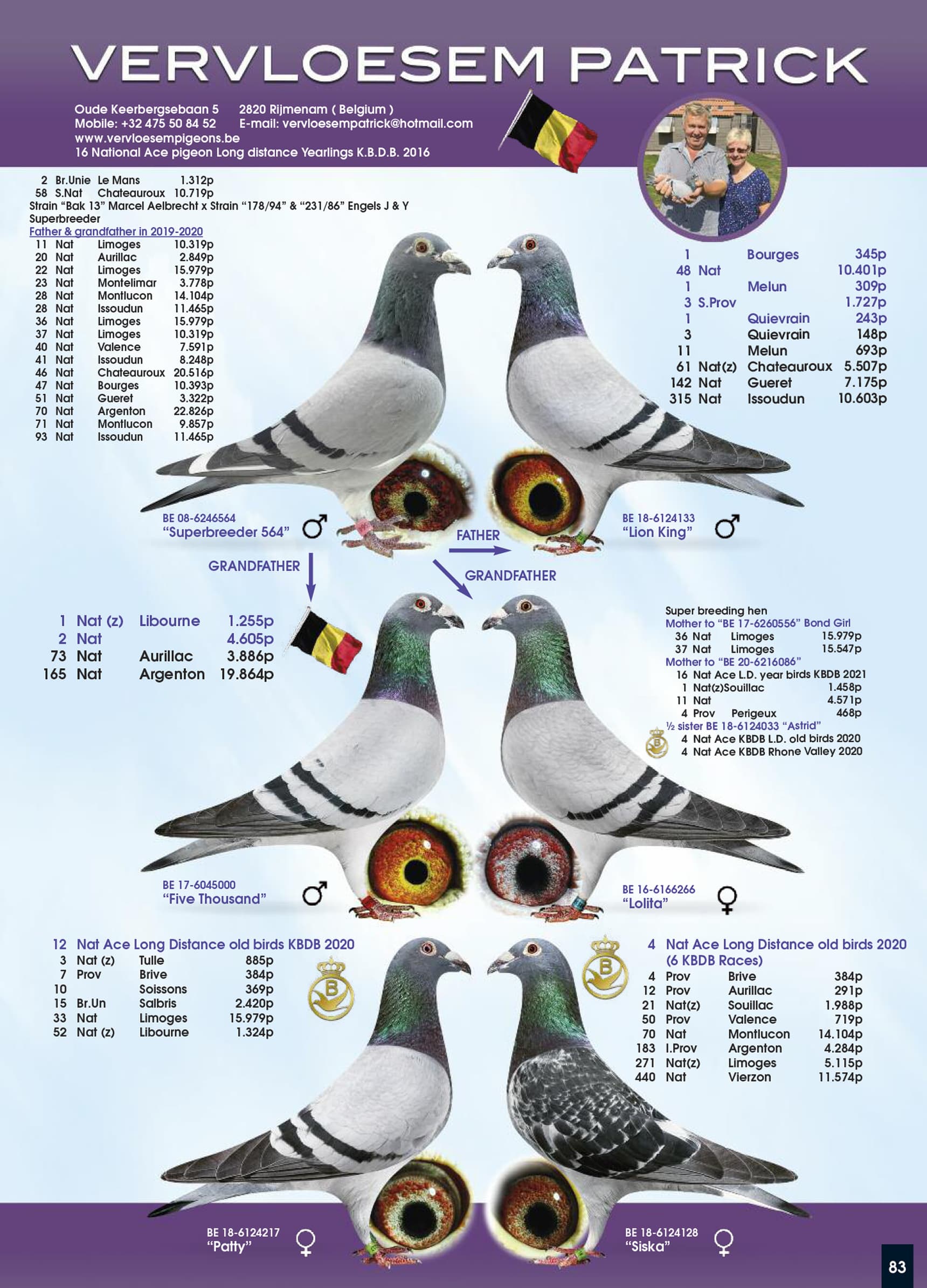 Daughter “Blue Prins” (2nd prov. Vierzon 6,928b. at Pros Roosen) x “Daughter Marseille” (daughter “De Marseille” x “Fijn Blauw” – Aelbrecht Marcel)