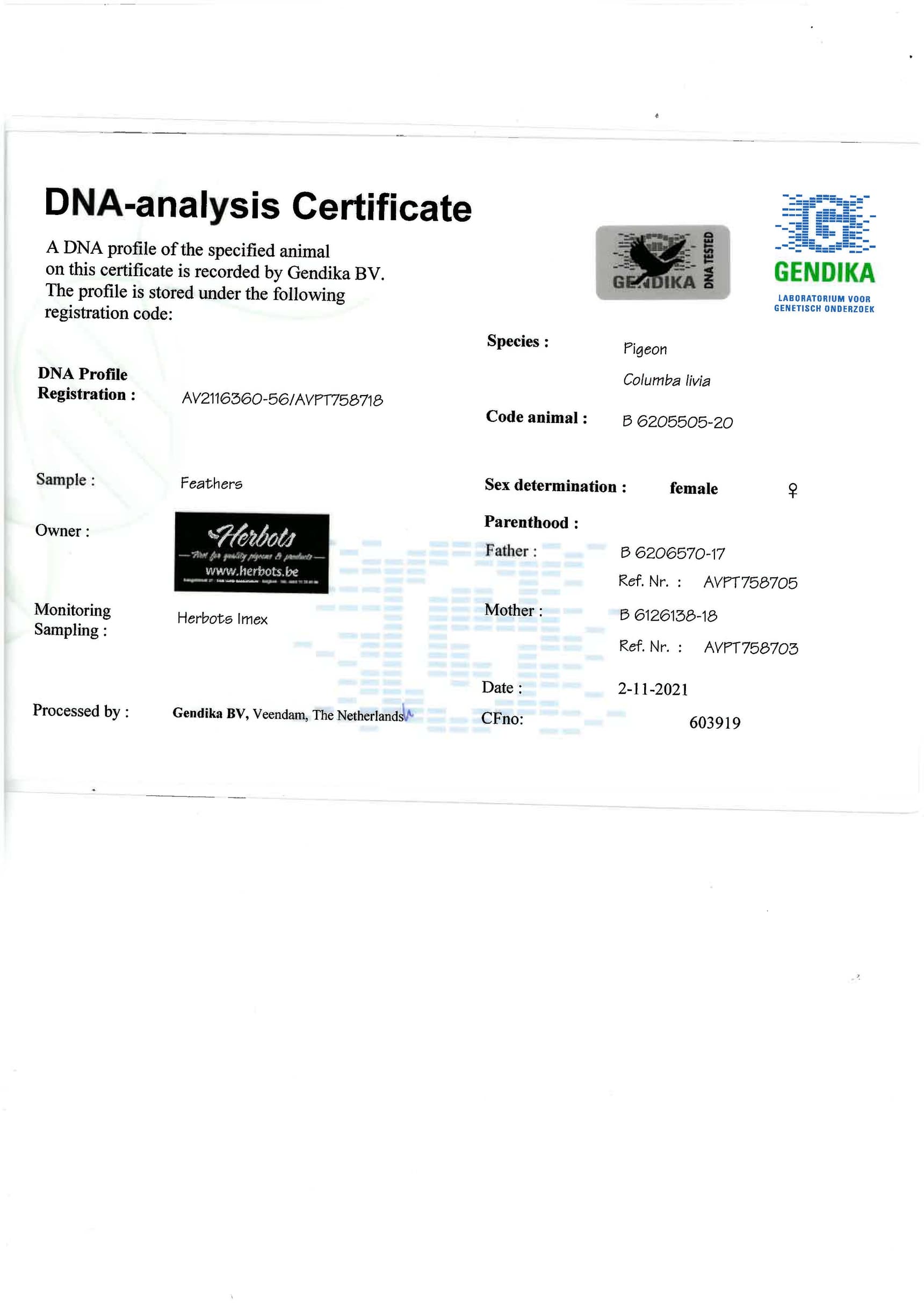 Direct daughter “Royal Pattaya” (Full brother to "Da Ya Na", winner of Best bird of Belgium on 2 Fond races ’16 – 1st Momignies 790b. – 2nd Souppes 1,247b. – 5th Souppes 1,176b. – 8th Nat. Tulle 6,101b. and so on ) x “Iron Force” (58th Nat. La Souterraine 16,665b. – 97th Nat. Guerret 12,592b. – and so on)