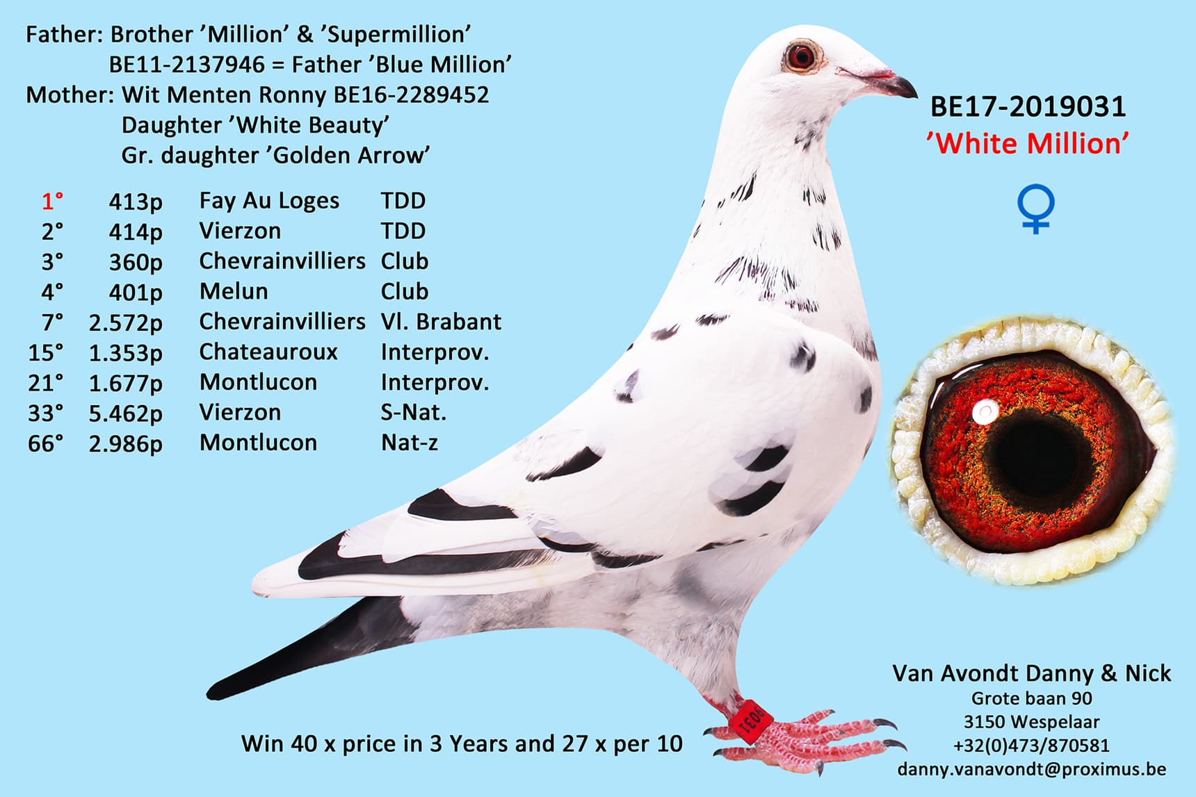 Breeder: VAN AVONDT DANNY & NICK 丹尼&尼克·范阿鸿