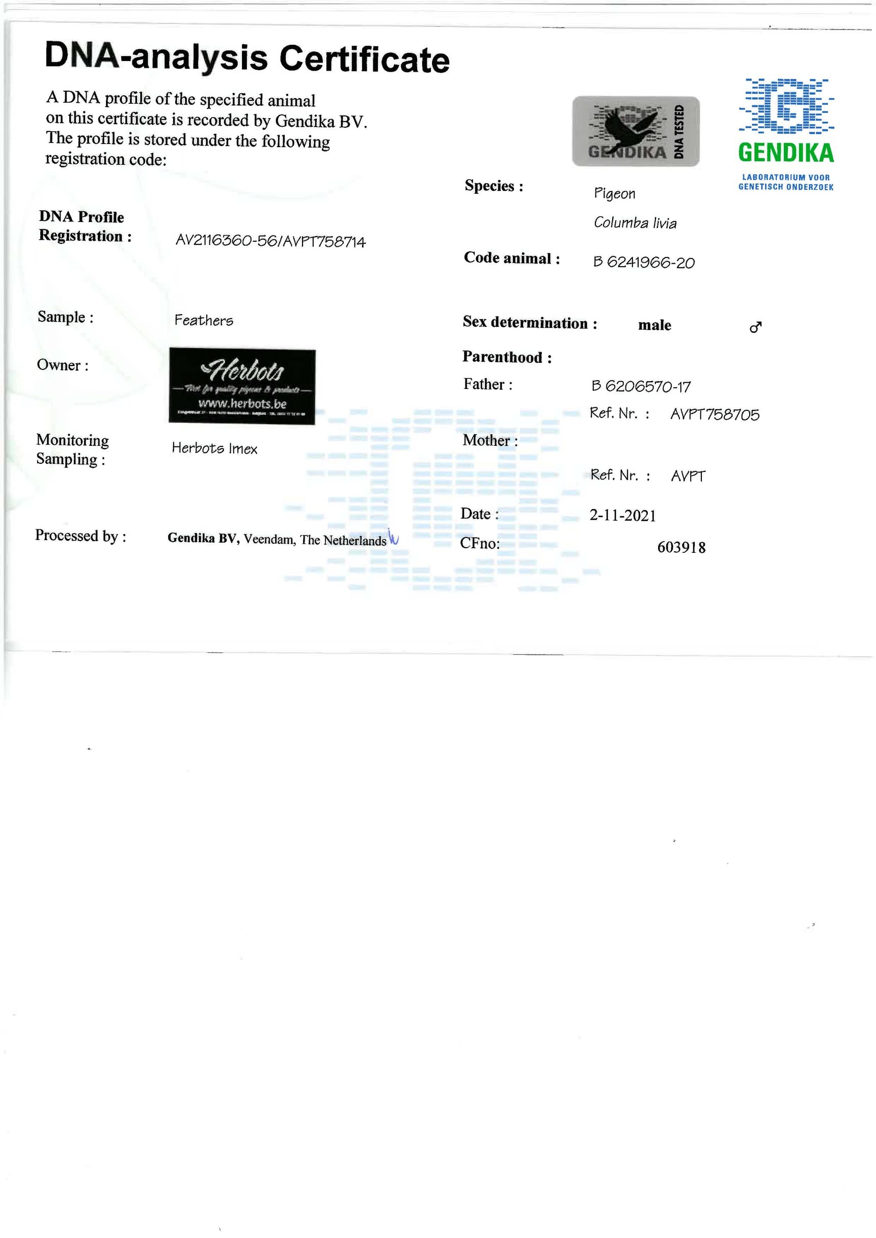 Is a full sister to “Grand Cru” (4th Nat. ace KBDB youngbirds – 8th Nat. Argenton 19,592b.)