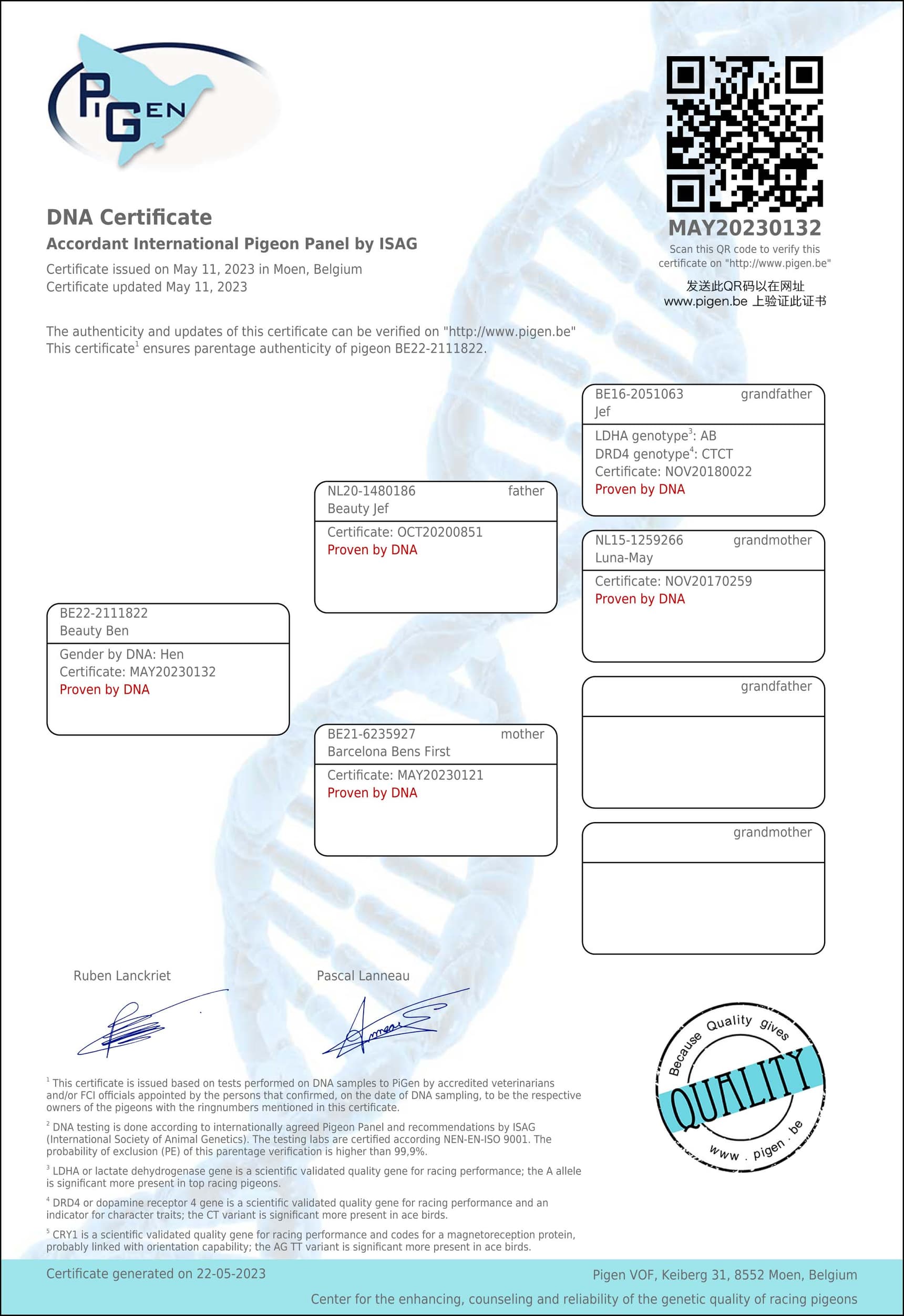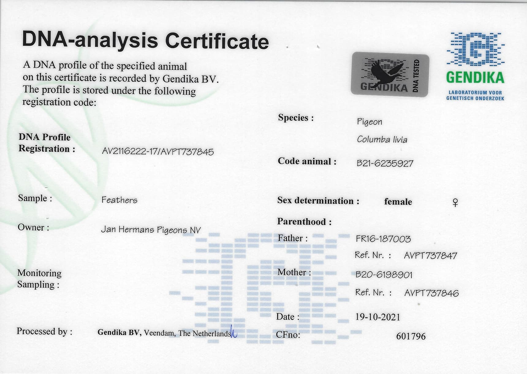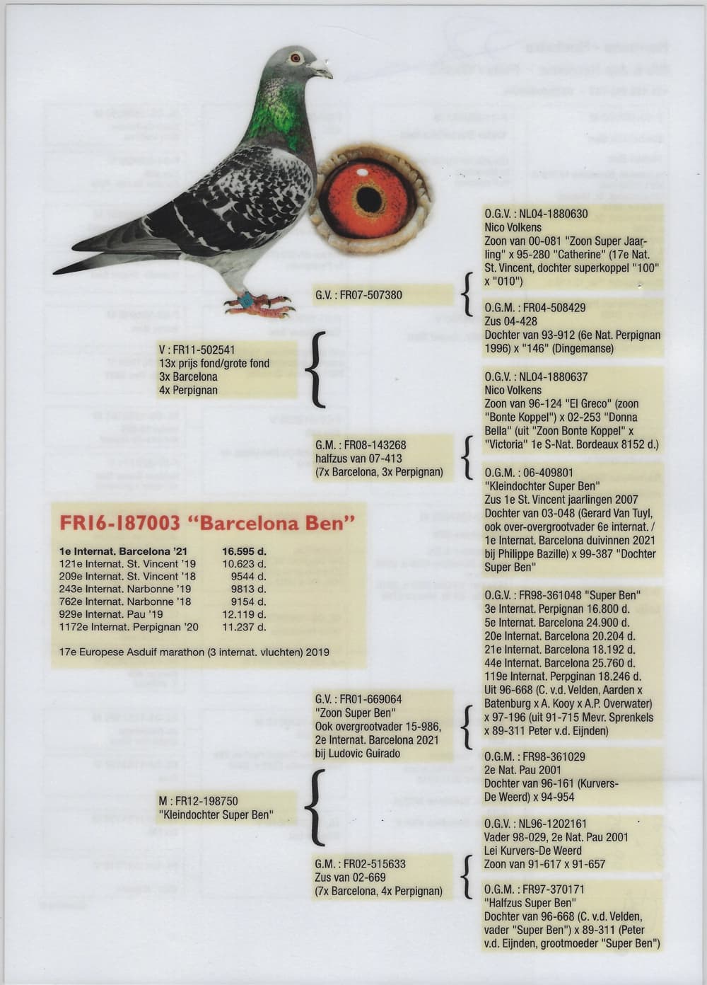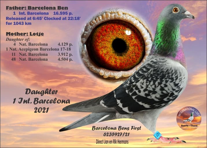 Born out “Barcelona 022” (4th Nat. Barcelona 4,129b.) x “Lot” (1st Nat. ace Barcelona ’17-‘18 Netherlands)