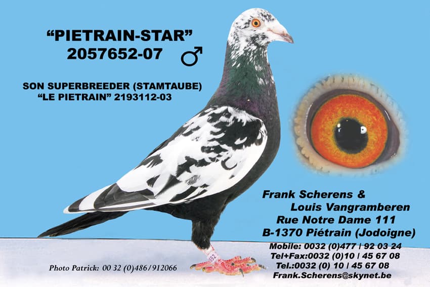 Direct daughter “Nestor” (grandson base breeder “Le Piétrain) x “Zwarte Panty” (daughter “Advokaat”, winner of 1st/1,258b. – 9th/425b. – and so on)