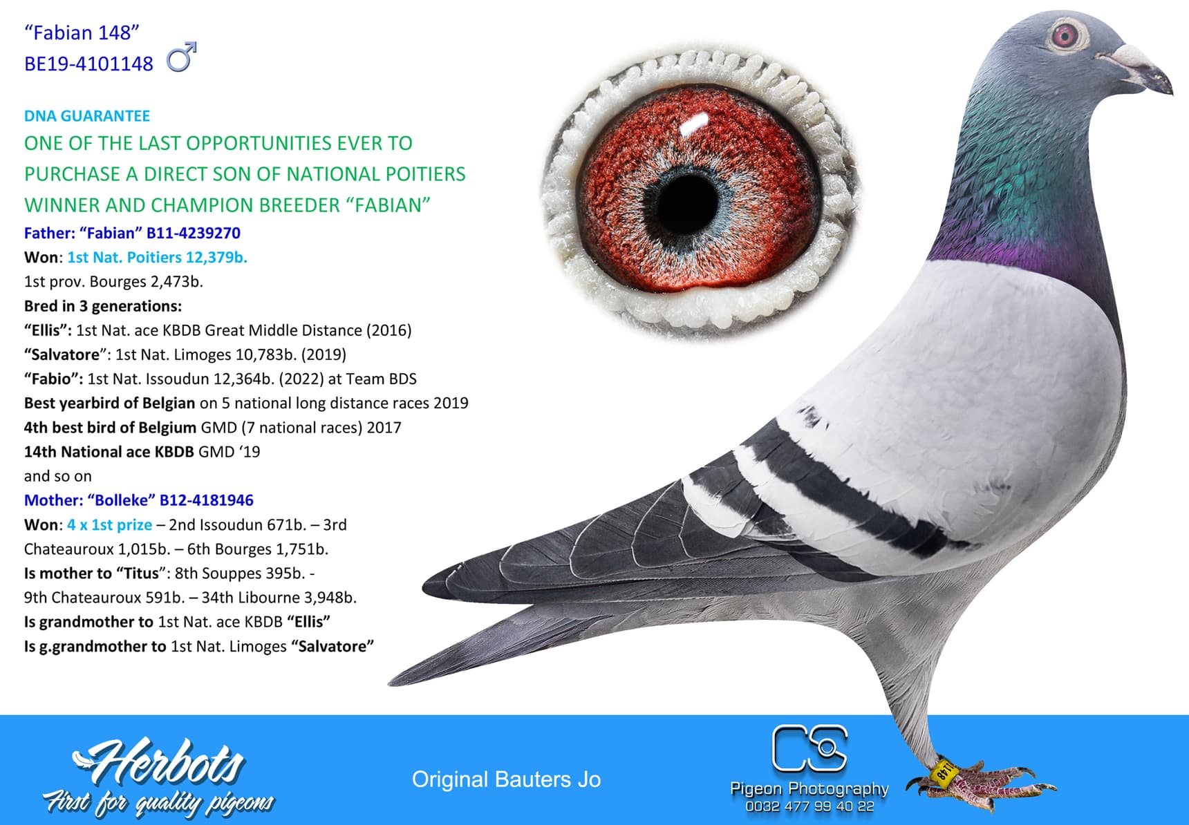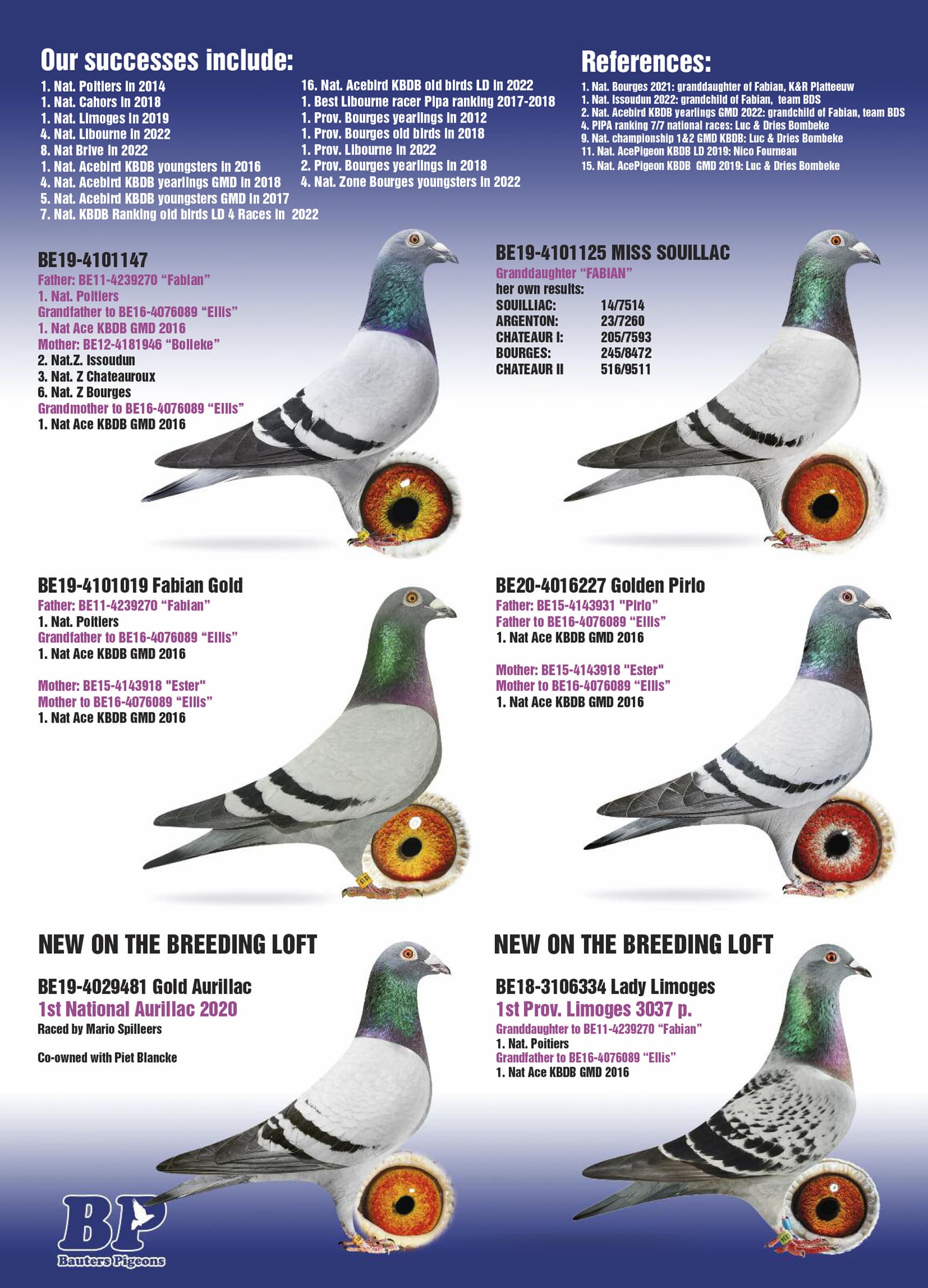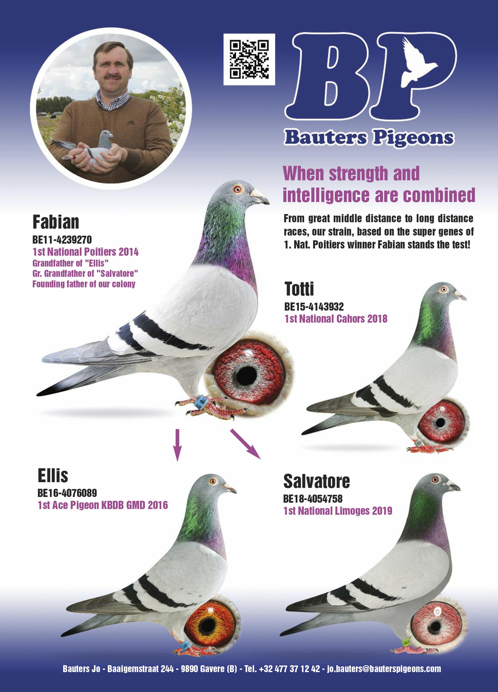 Best yearbird of Belgian on 5 national long distance races 2019 - 4th best bird of Belgium GMD (7 national races) 2017 - 14th National ace KBDB GMD ‘19 and so on