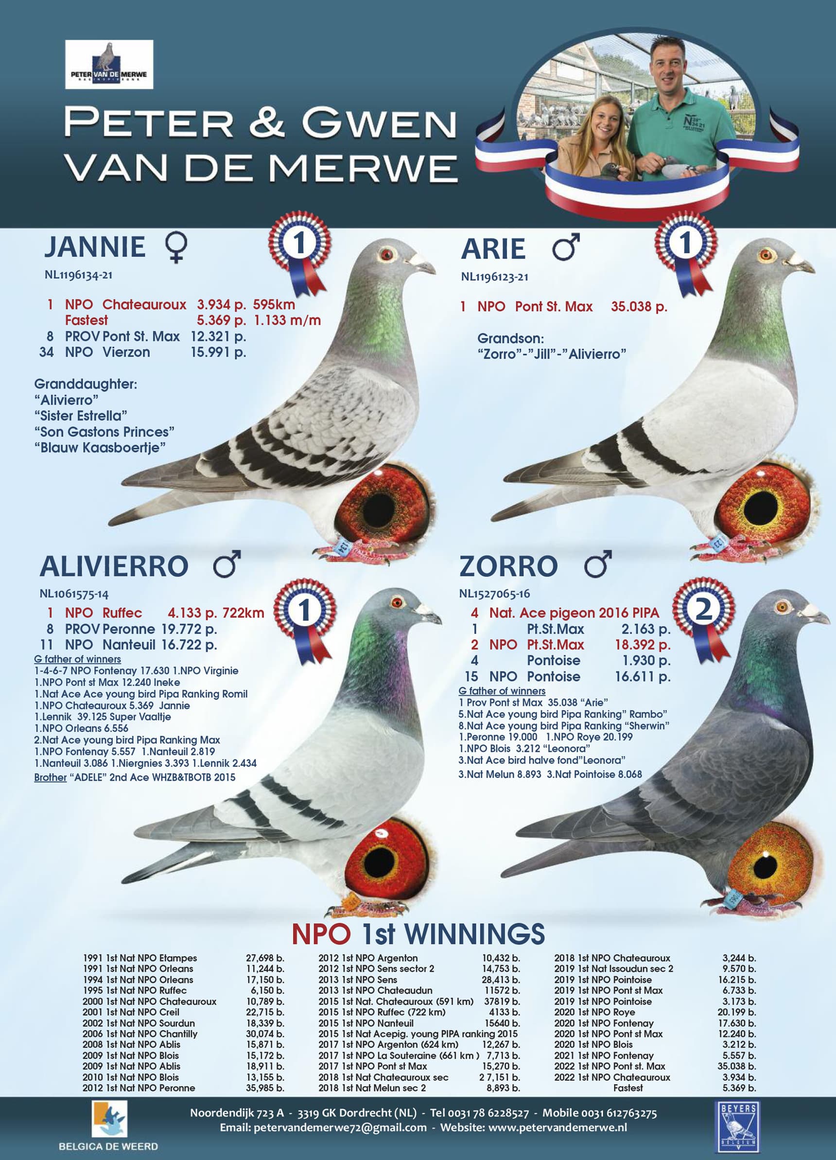 4th Nat. ace – 1st Peronne 3,603b. – 2nd NPO Pont 3,477b. – 4th Quievrain 2,234b. – 28th Nat.Pontoise 8,068b.