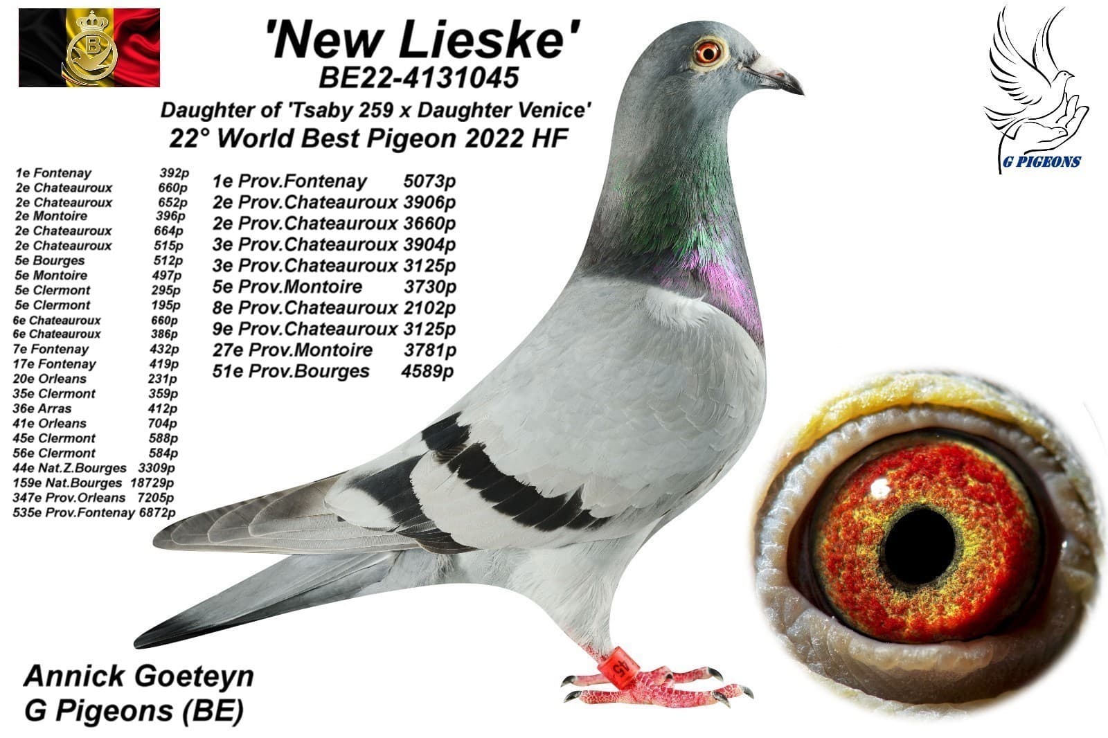 Direct daughter “Mandela” (son “G-Power” x “Oreley”) x “Venice” (winner of: 3rd Issoudun 252b. – 29th Prov. 2,860b. - 32nd Nat. Tulle 7,155b. – 49th Prov. Tours 2,835b. – 55th Prov. Issoudun 2,563b. – 66th Prov. Argenton 1,947b.)